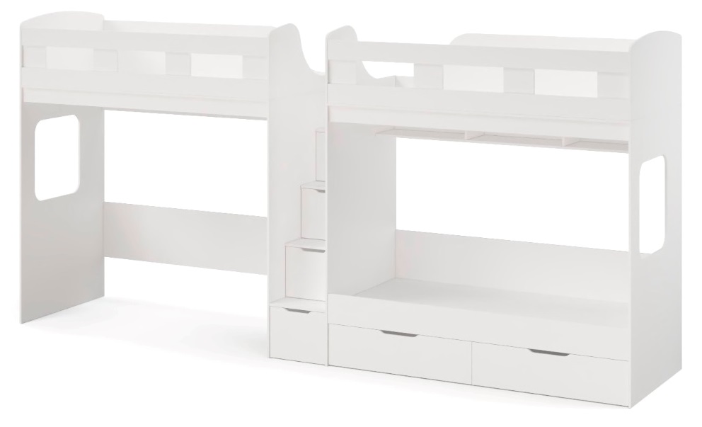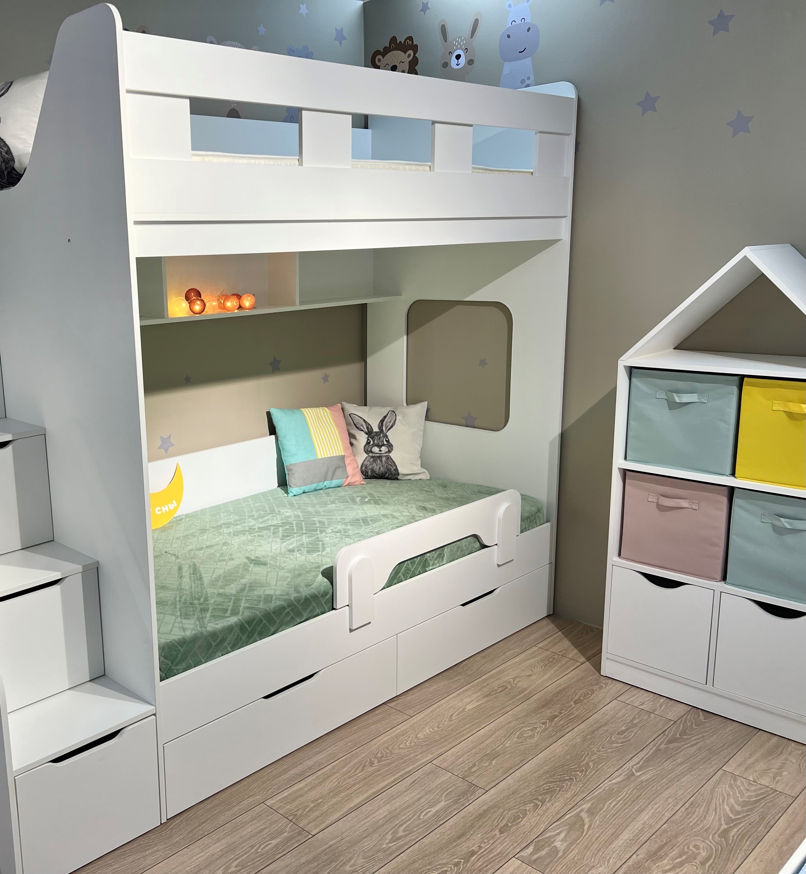 Высокая нагрузка на спальные места. Удобная лестница-комод. Высокие, безопасные бортики |
