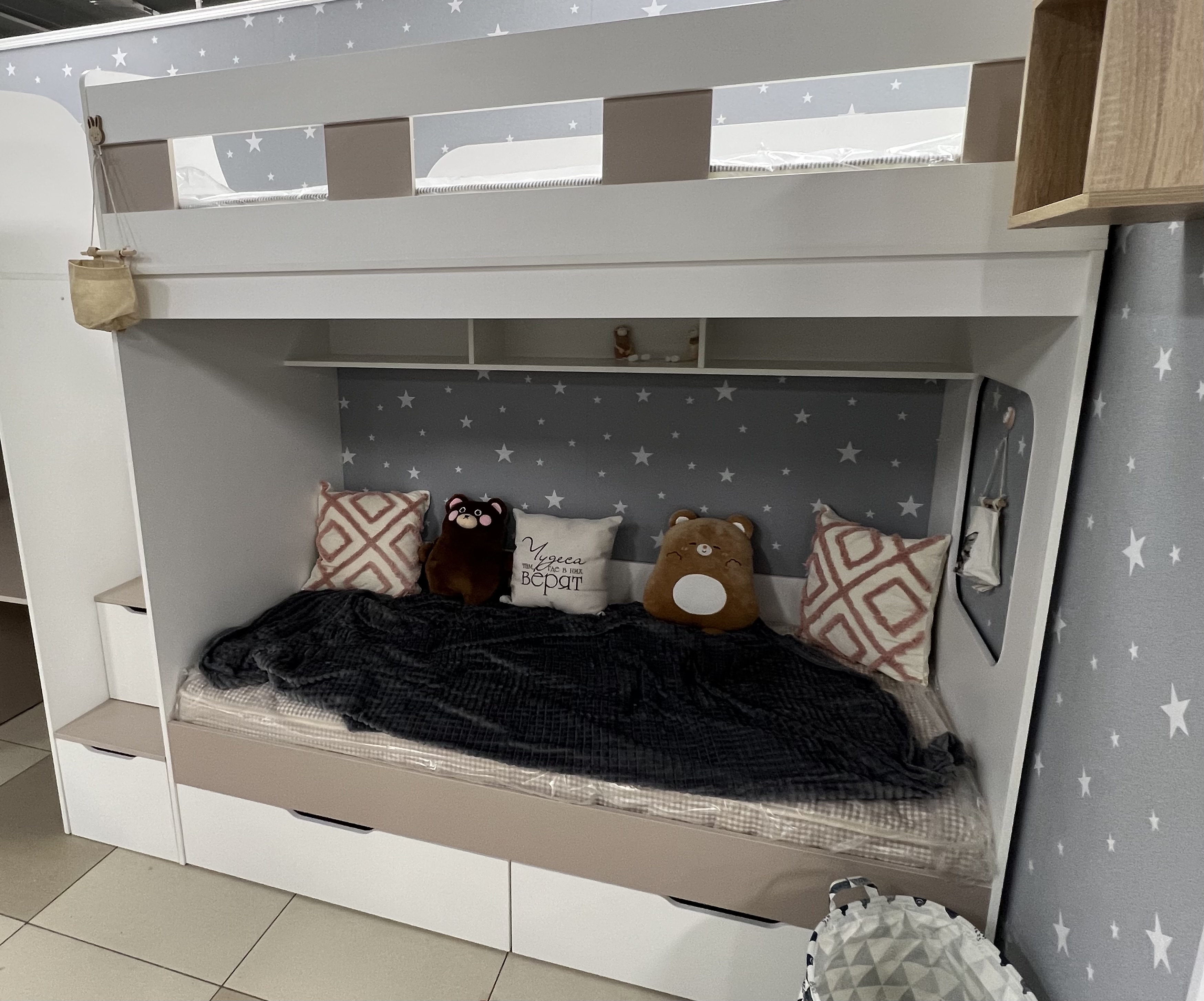 - Максимальная экономия пространства: модель освобождает место для игр и учебы, сохраняя при этом уют и комфорт.