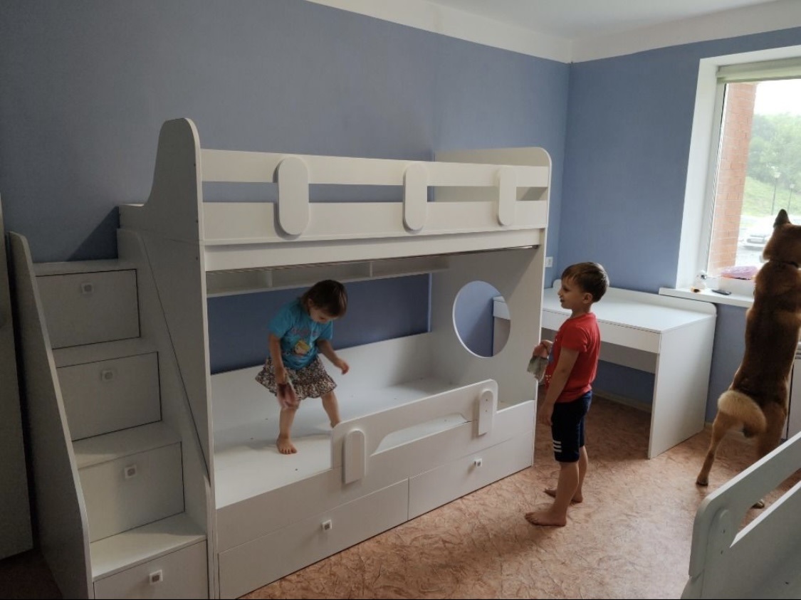 Двухъярусная кровать Фортуна-2 с удобной лестницей, высоким, безопасным бортиком и комфортной высотой.