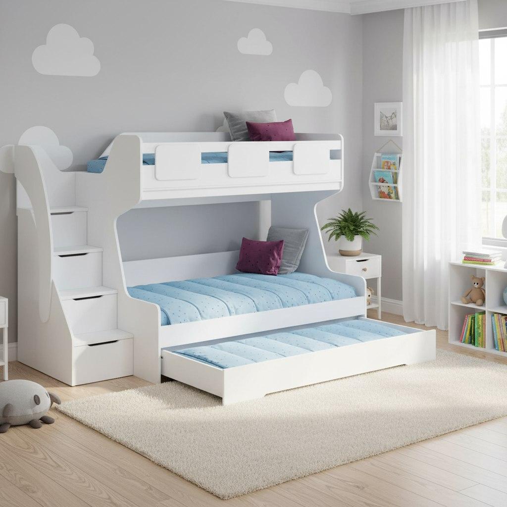 Увеличенное, просторное нижнее спальное место позволяет комфортно разместиться ребенку вместе со взрослым.