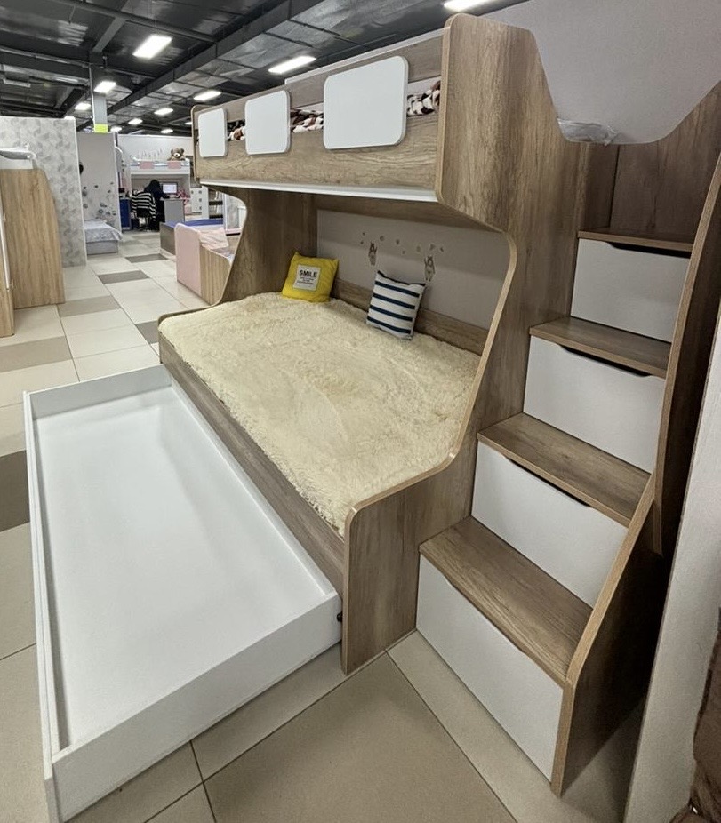 Вместо них - цельный и прочный настил из ЛДСП, который выдерживает сверхвысокую нагрузку и позволяет расположиться даже взрослому с ребенком.