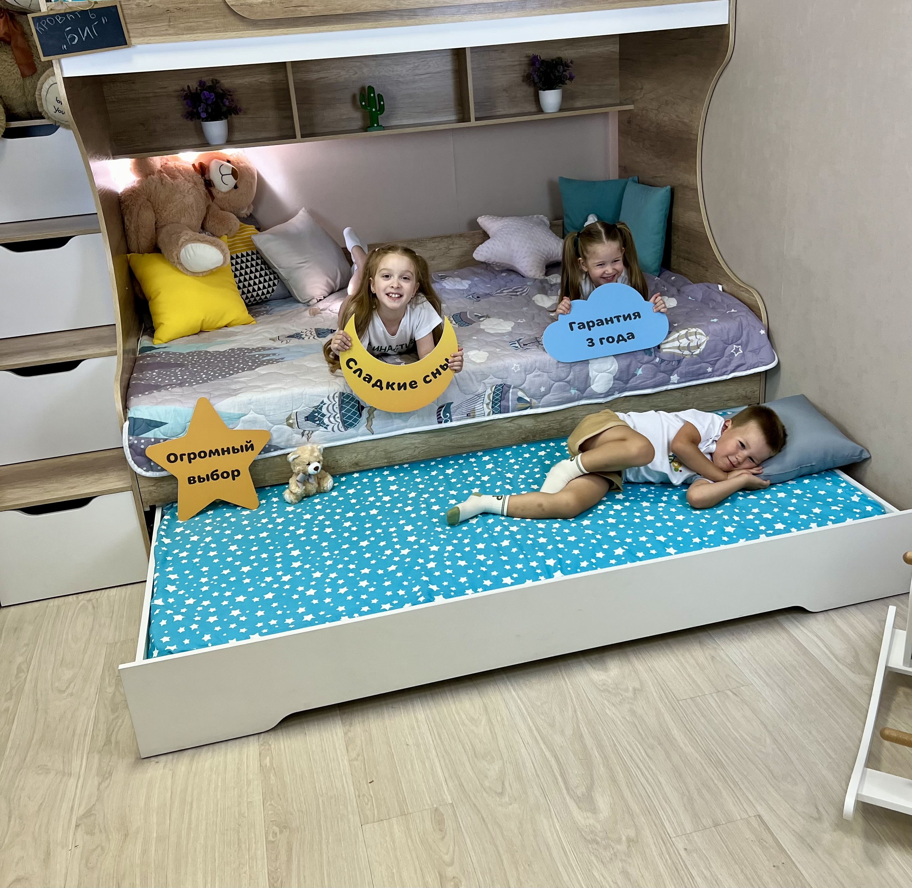 Просторная двухъярусная кровать БИГ с дополнительным третьим спальным местом