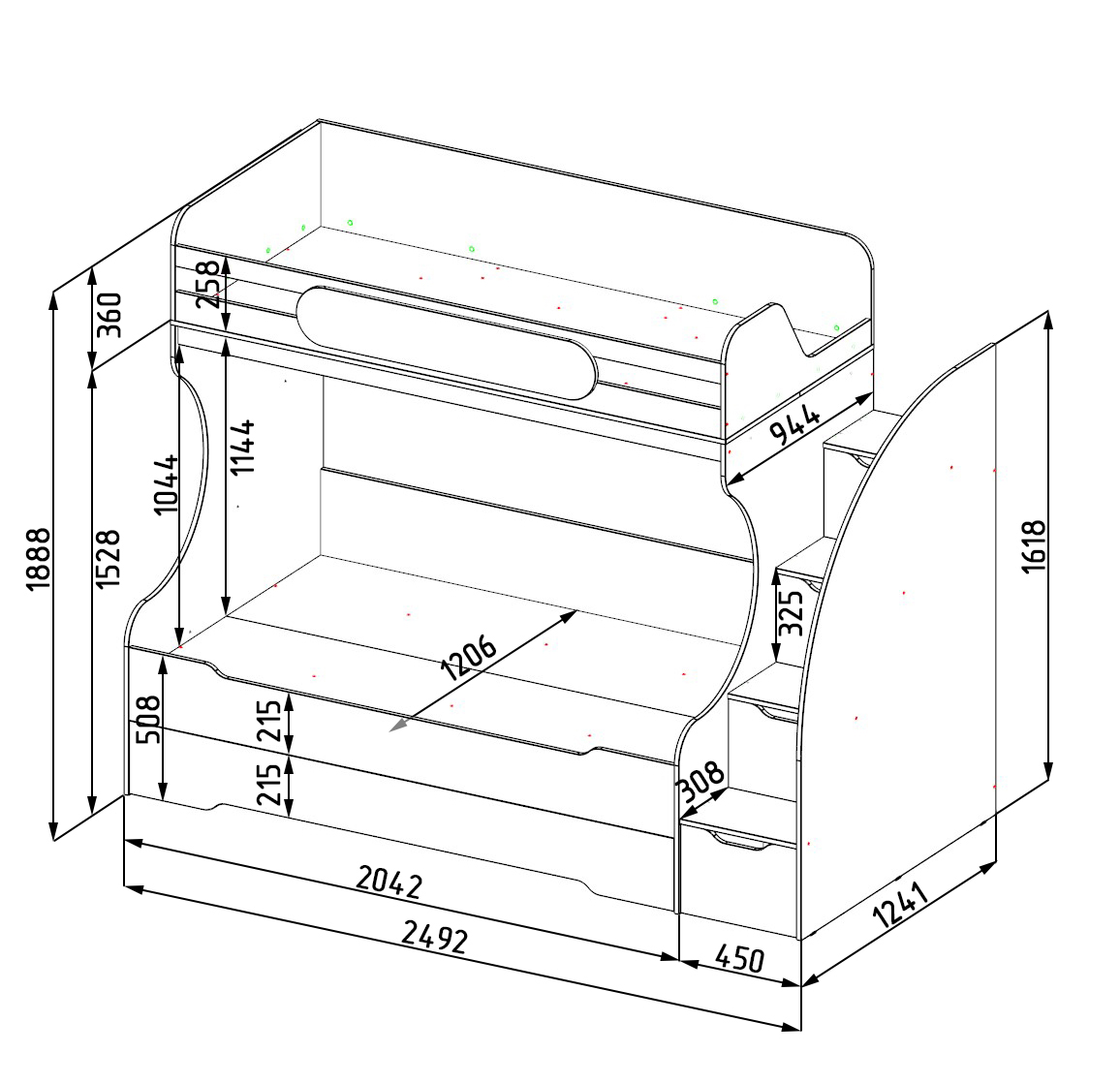 Вместо них - цельный и прочный настил из ЛДСП, который выдерживает сверхвысокую нагрузку и позволяет расположиться даже взрослому с ребенком.