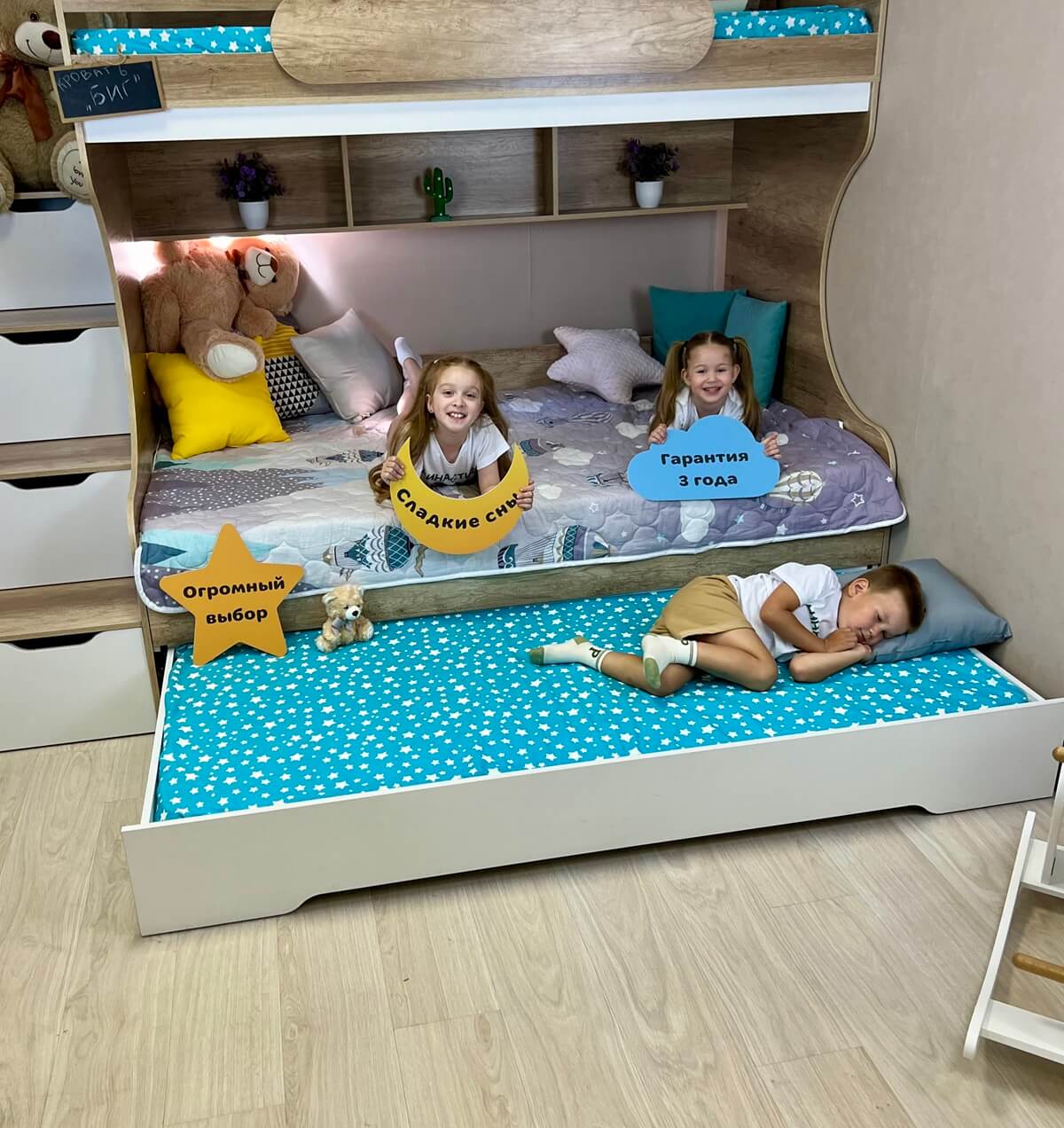 Просторная двухъярусная кровать БИГ с дополнительным третьим спальным местом