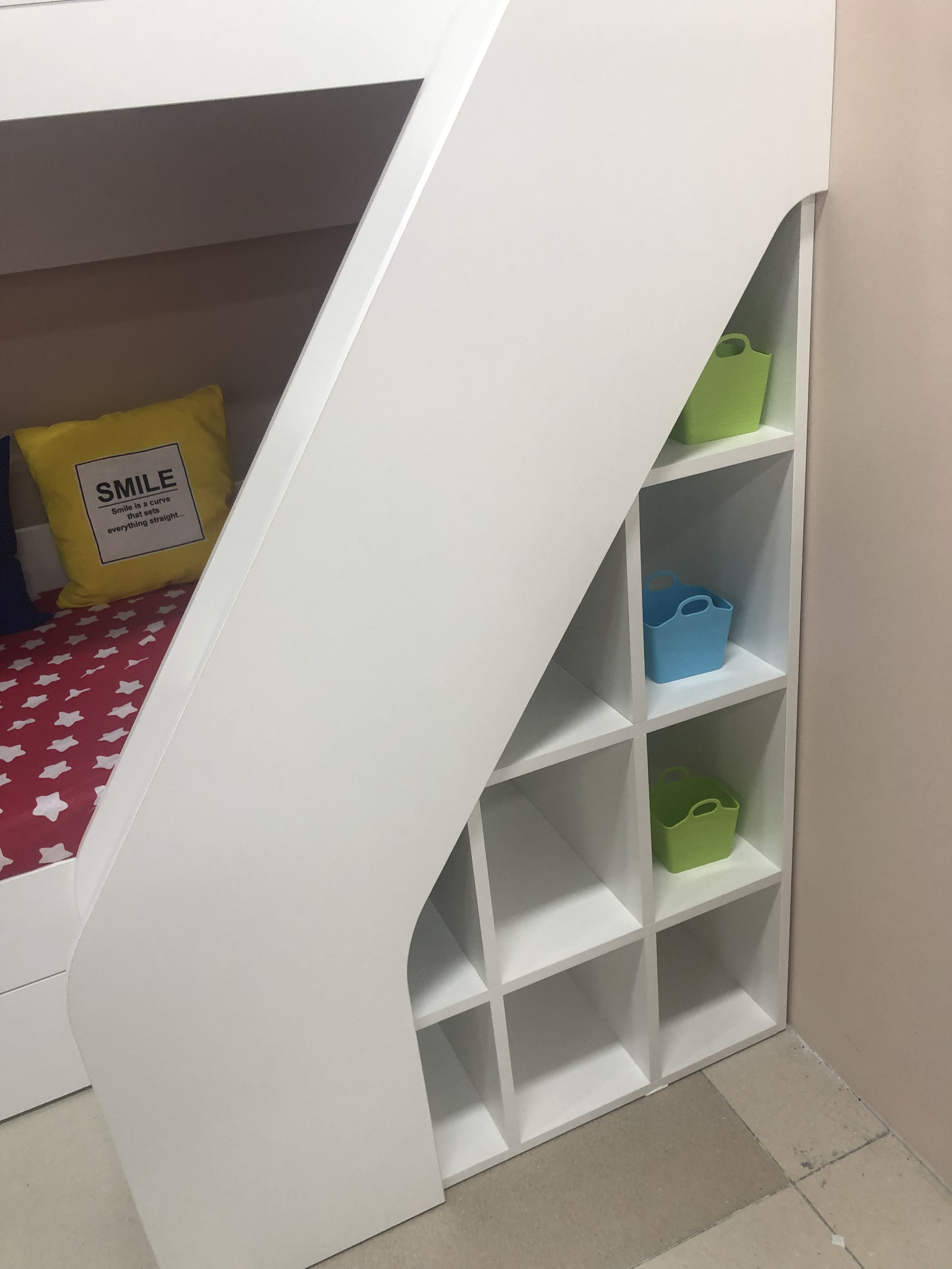 В нижней части лестницы имеется ящик для игрушек.