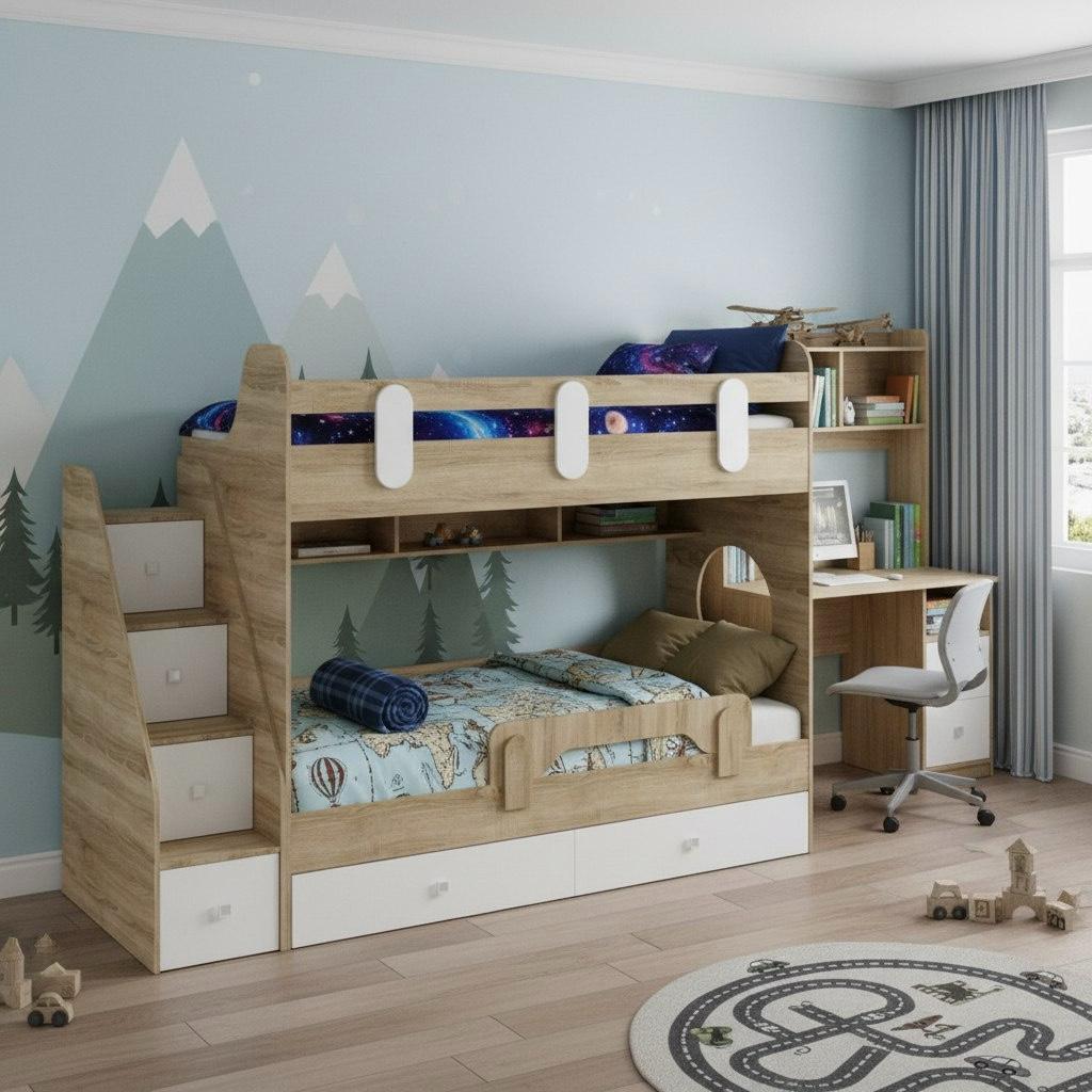 Высокая нагрузка на спальные места. Прочные ящики! Высокий, безопасный бортик |