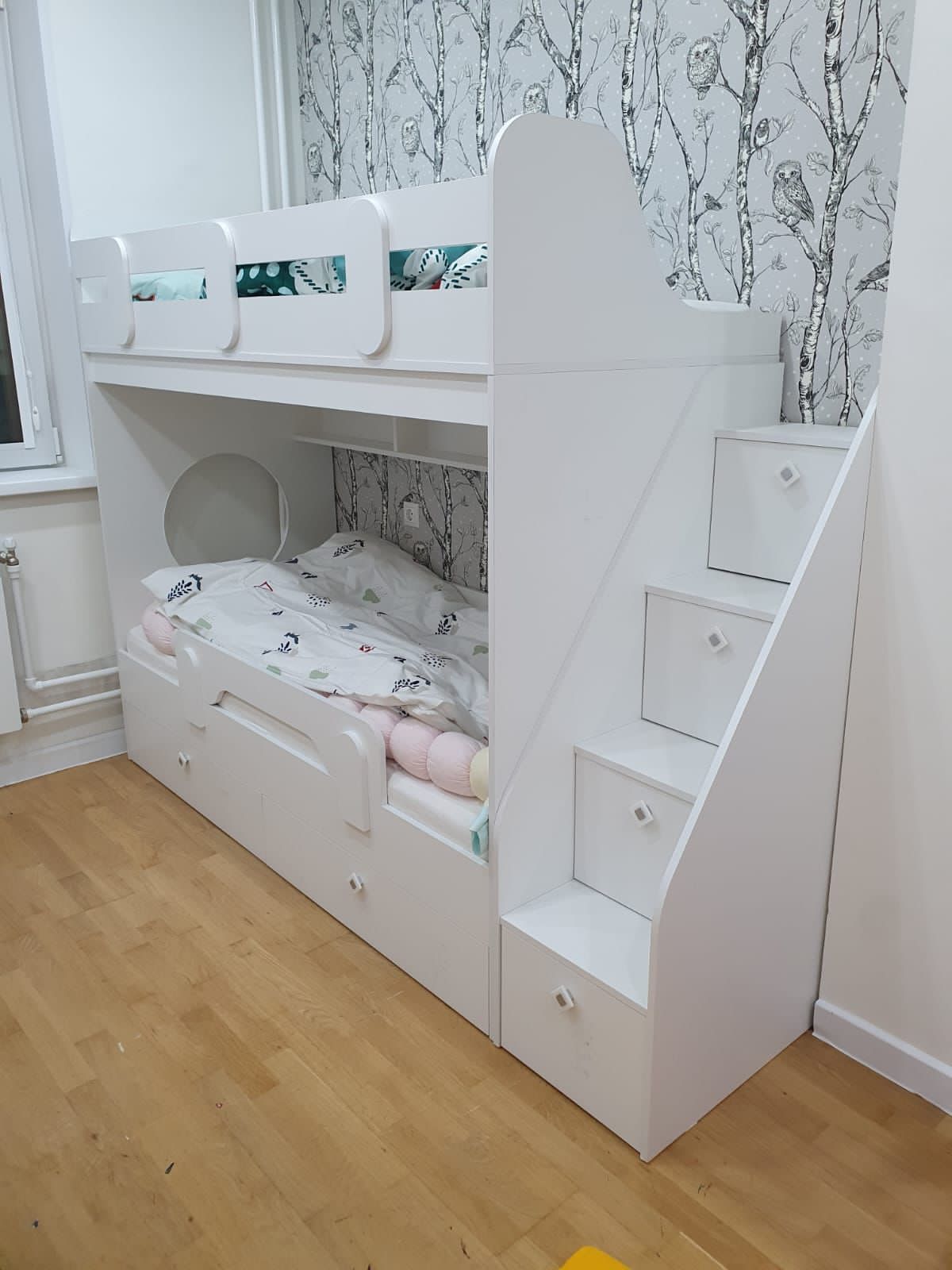 Высокая нагрузка на спальные места. Прочные ящики. Высокий, безопасный бортик |