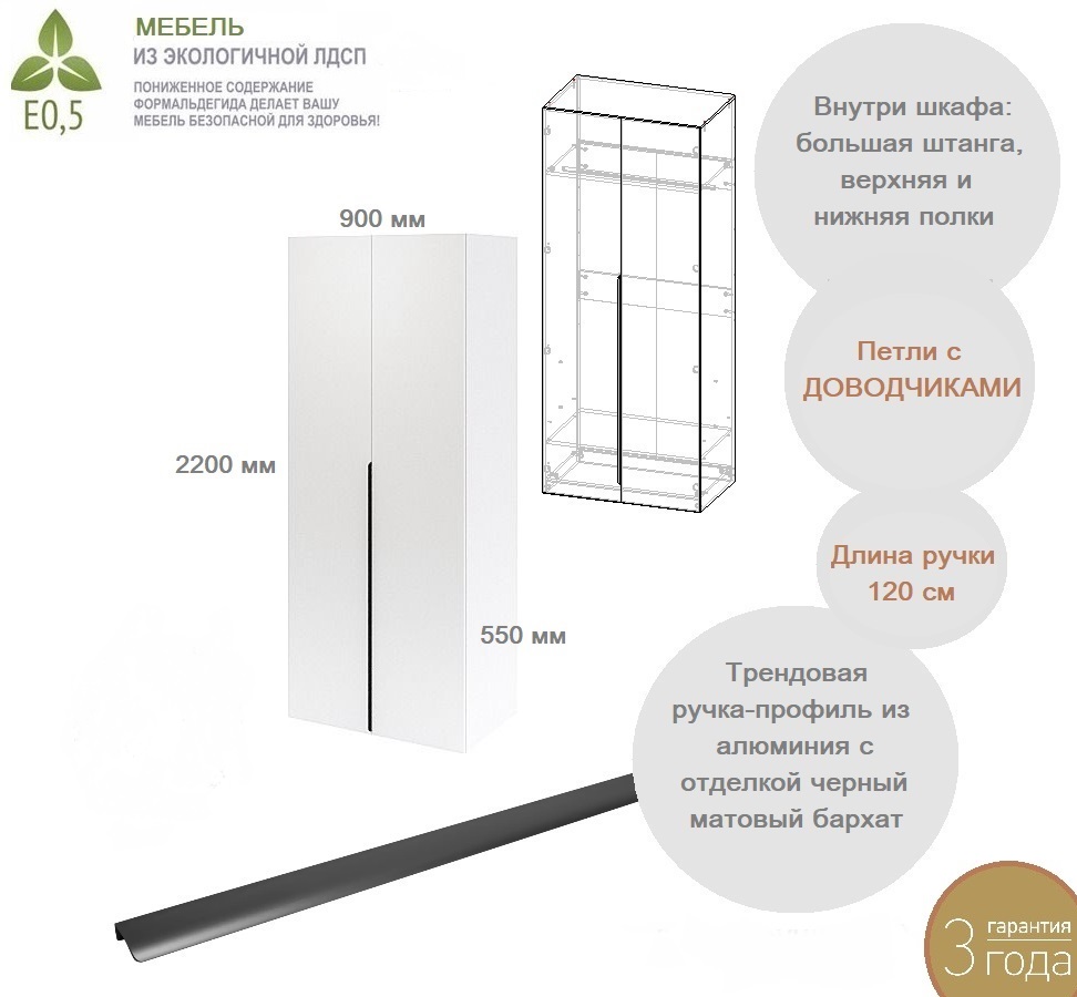 ширина 900 х высота 2200 х глубина 550 мм