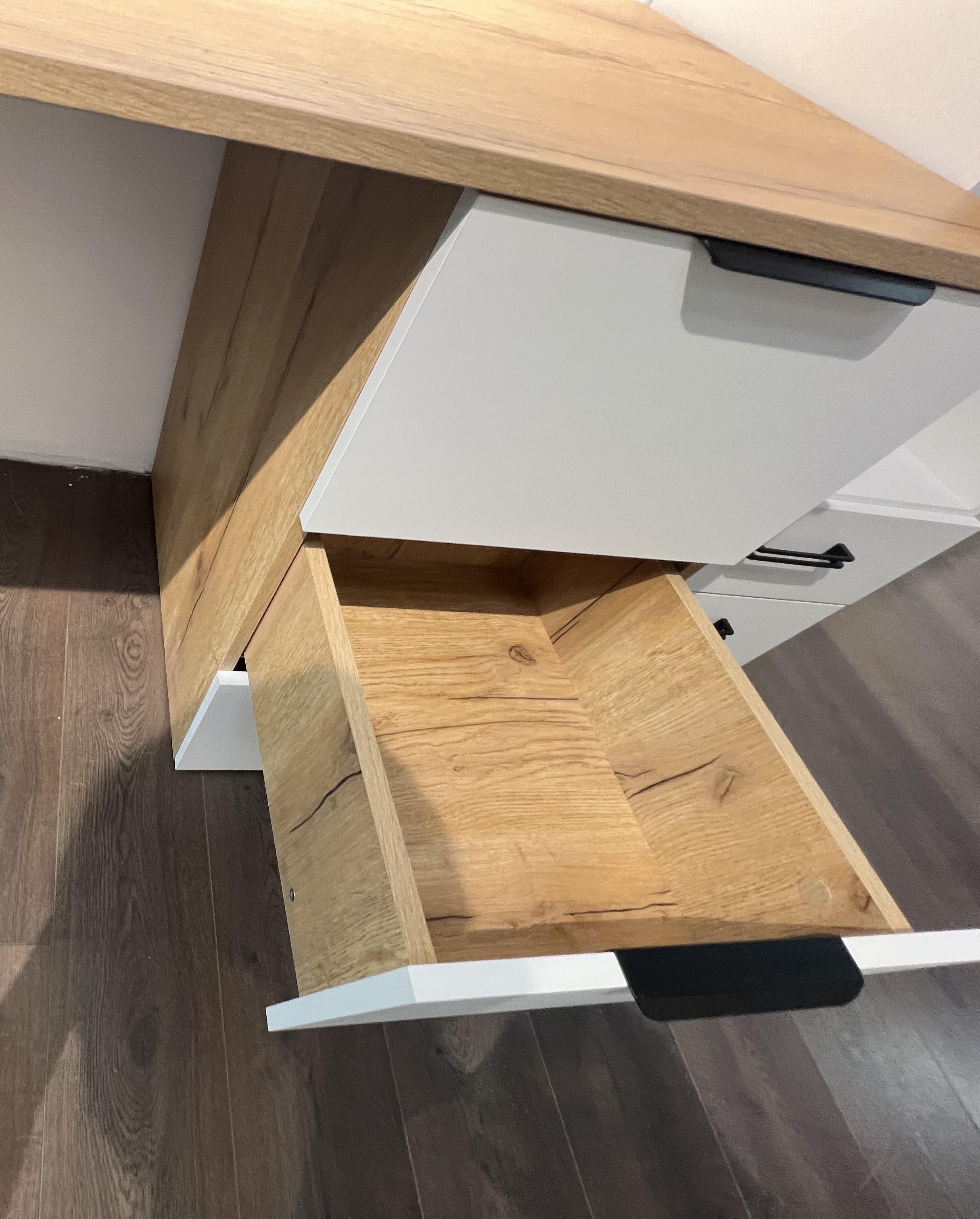 Столешница из прочного и качественного материала устойчива к царапинам и прекрасно справляется с повседневным износом.