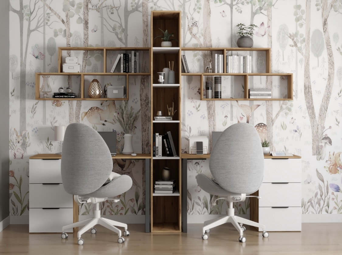 Комплект для 2 детей Брайт Золотистый: стол 2 шт. + стеллаж + полки 2 шт.