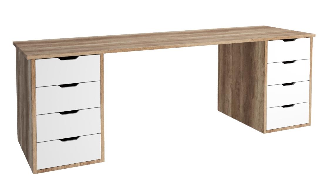 —Стол Дуэт 2000 мм (две тумбы) дуб каньон + белый. Столешница 22 мм
