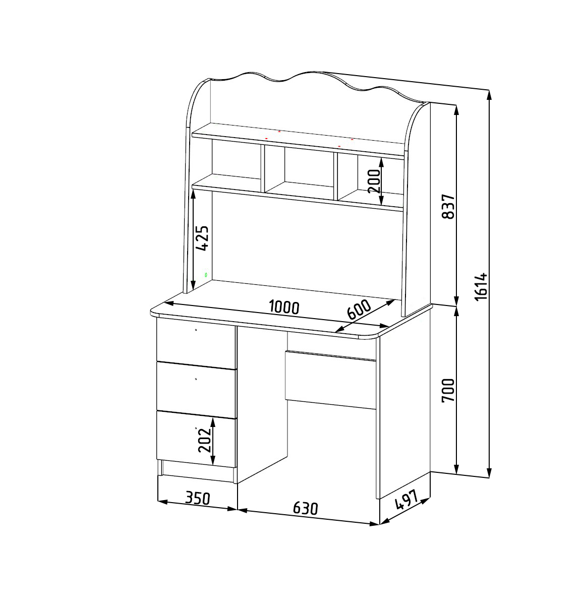 Габариты: ш1000 х в1550 х г600 мм