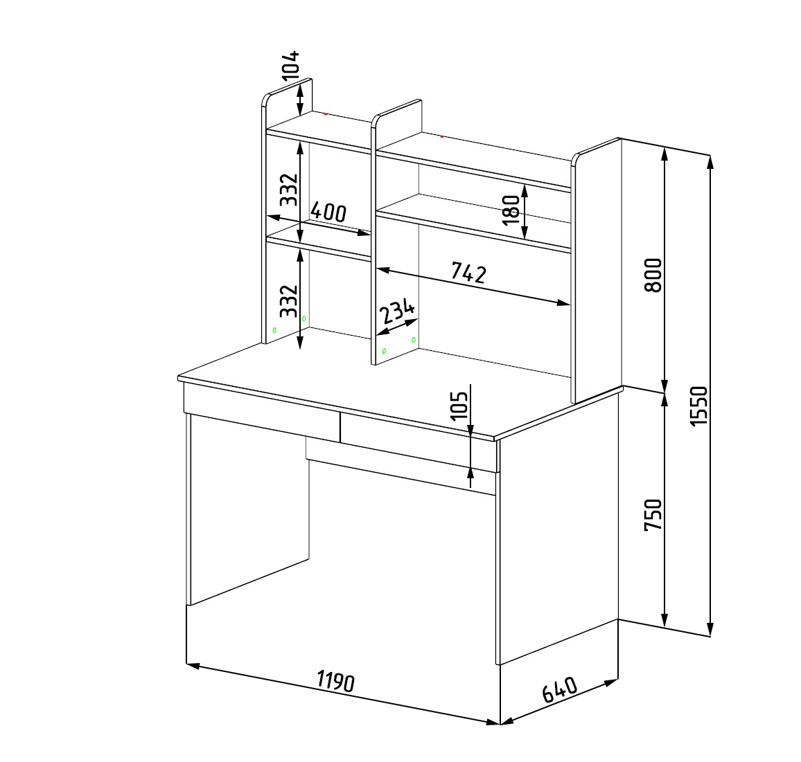 Габариты стола: ширина 1200 х высота 1550 х глубина 700 мм