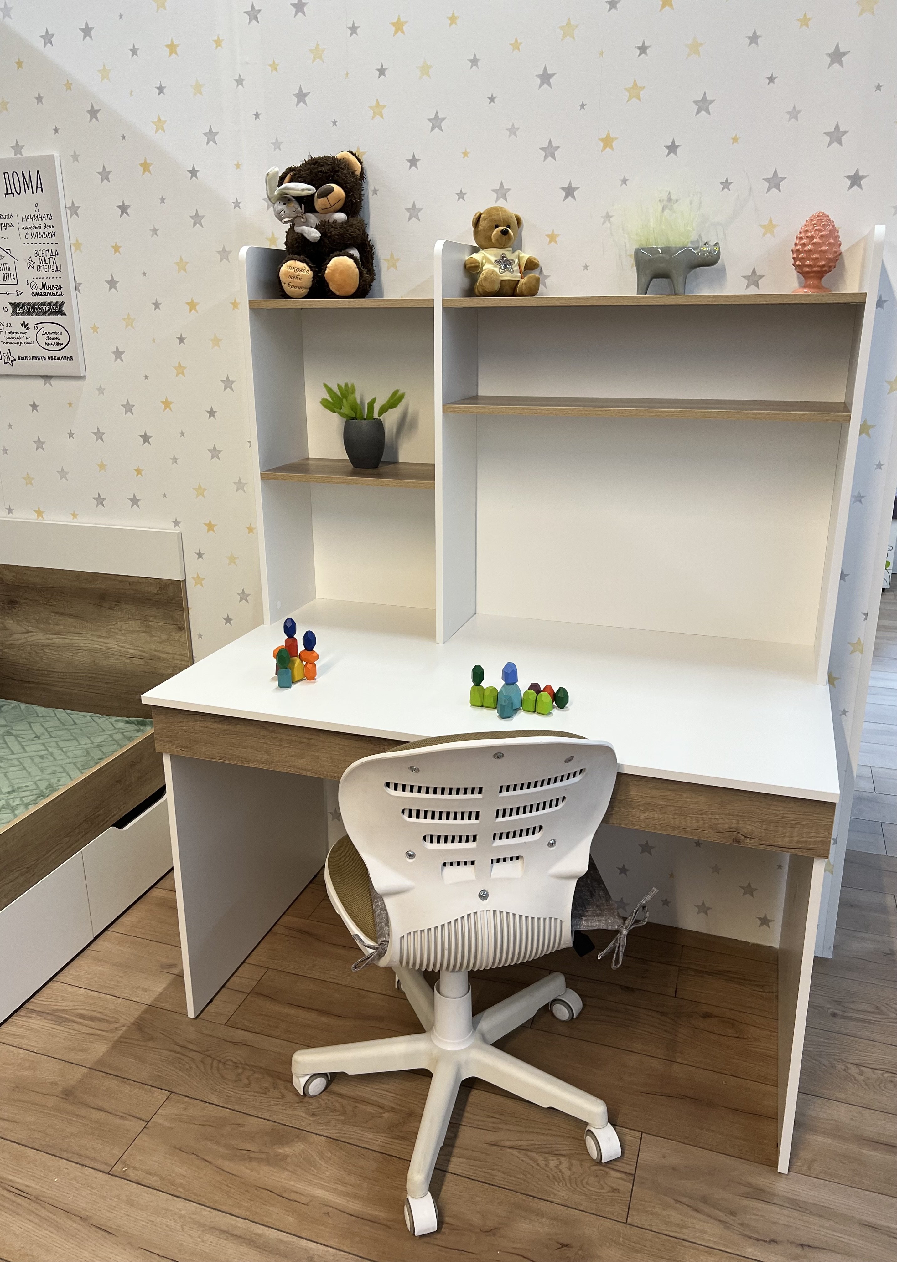 Мебель выполнена из сертифицированного, качественного, экологически чистого ЛДСП Е0,5 в сочетании цветов "дуб каньон + белый".
