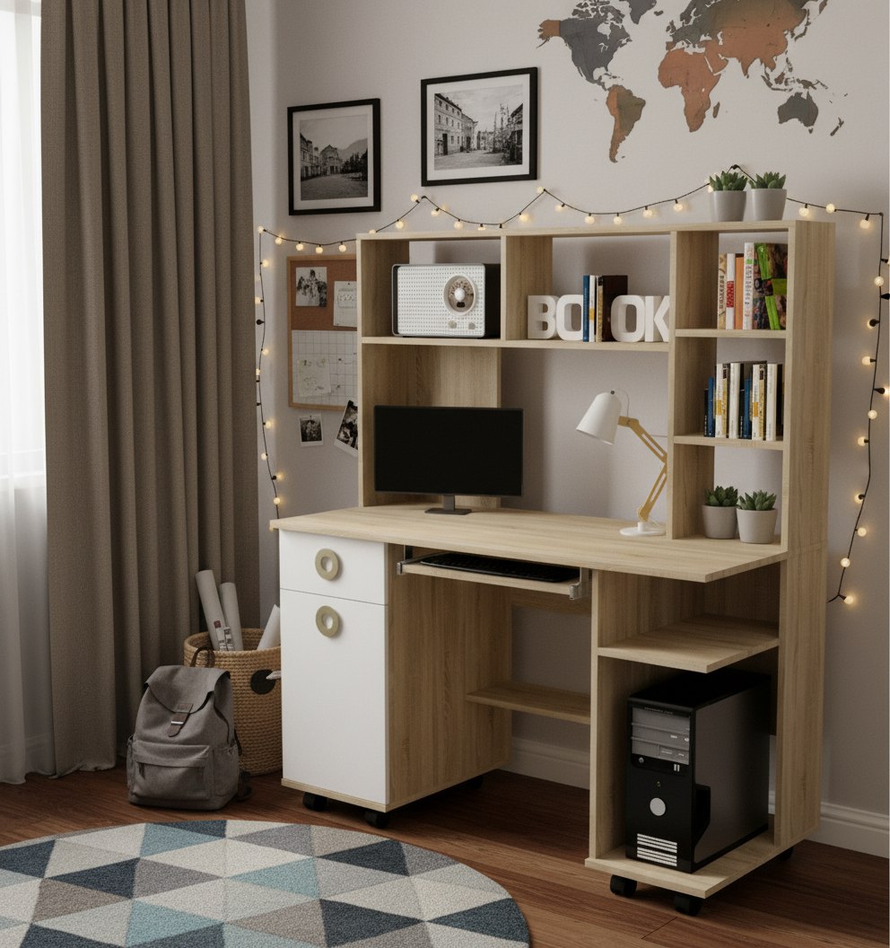 Материал: сертифицированное, качественное, экологически чистое ЛДСП Е0,5 в цвете дуб сонома + белый.