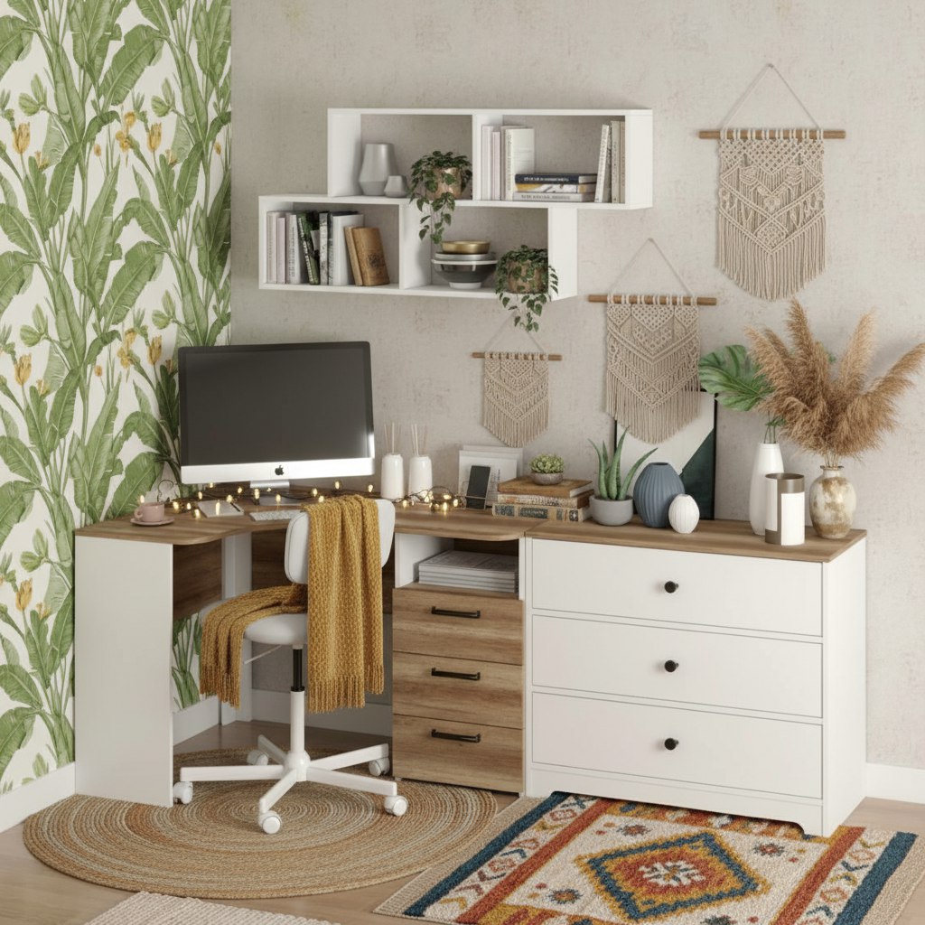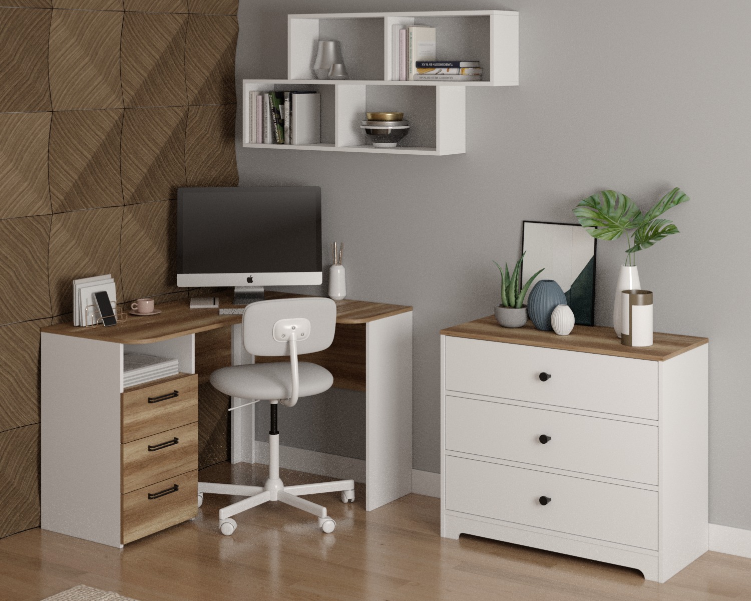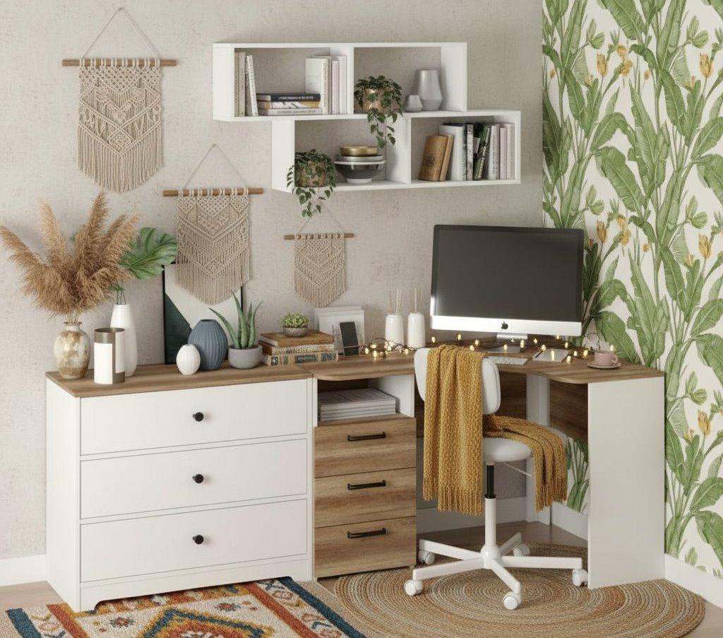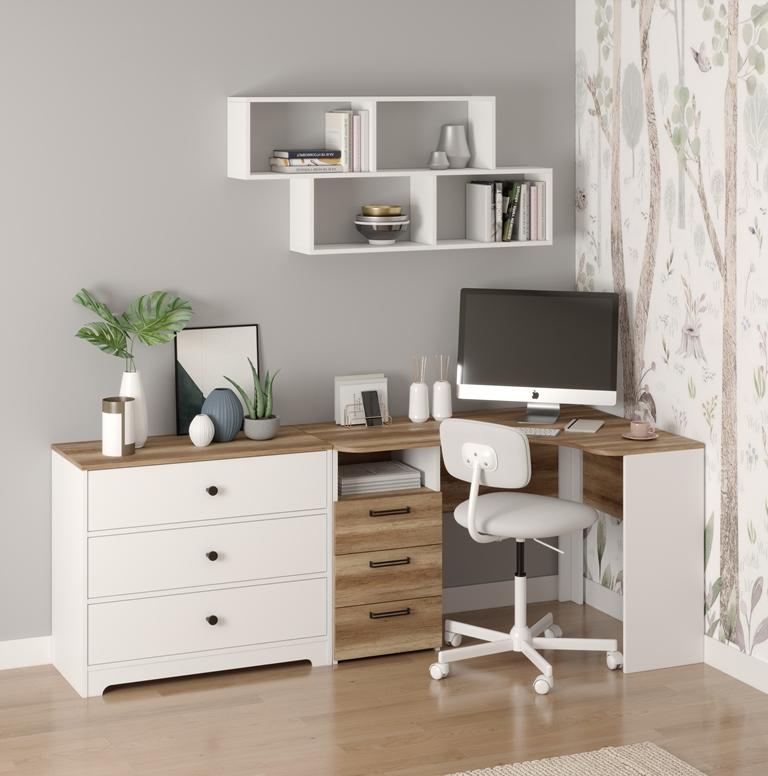 —Рабочая зона для школьника: угловой стол + комод + полка