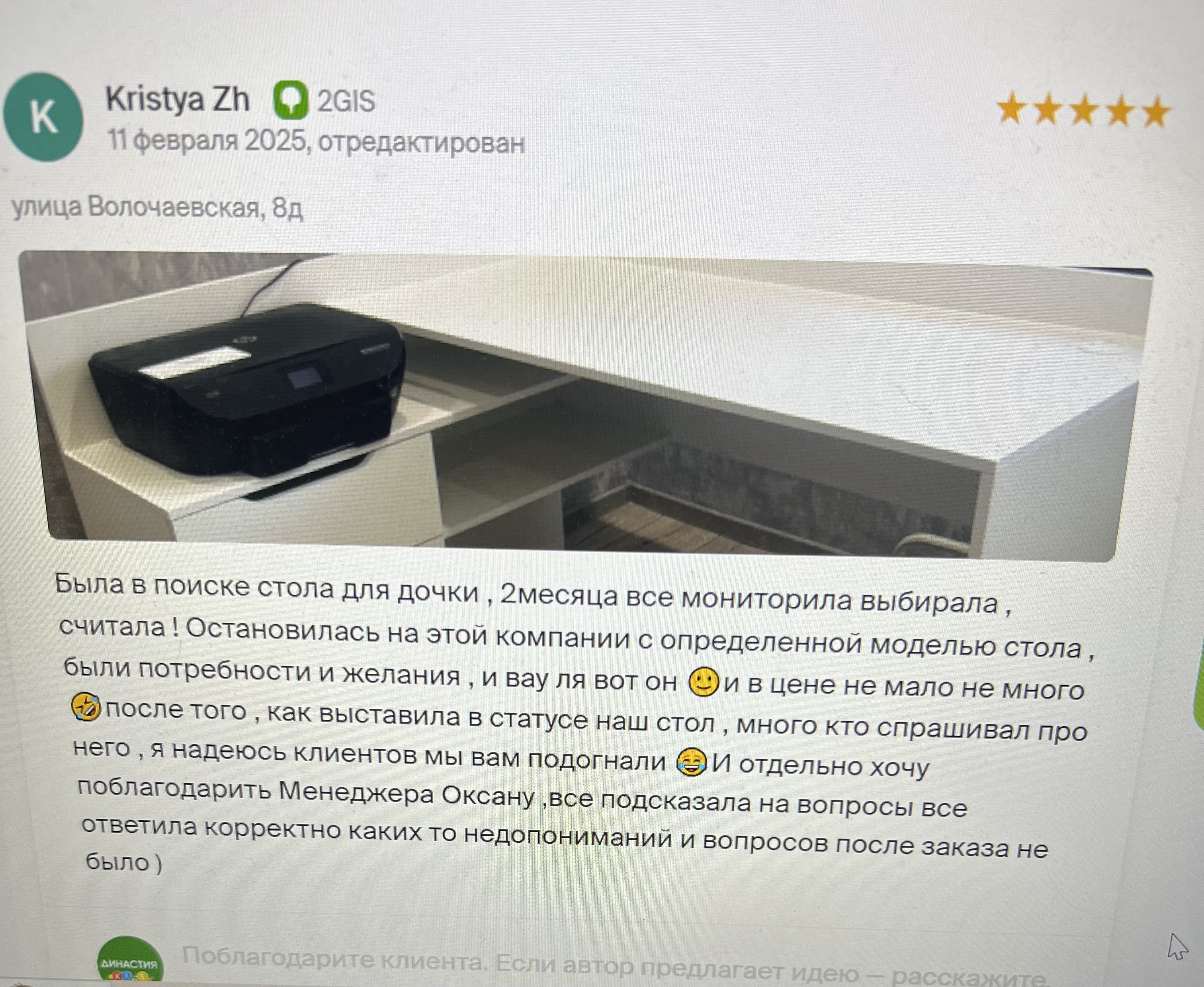 <virtues>Просто шикарный стол! Долго искала подобный вариант. Подробный отзыв оставила в 2гис)</virtues> <comment></comment>