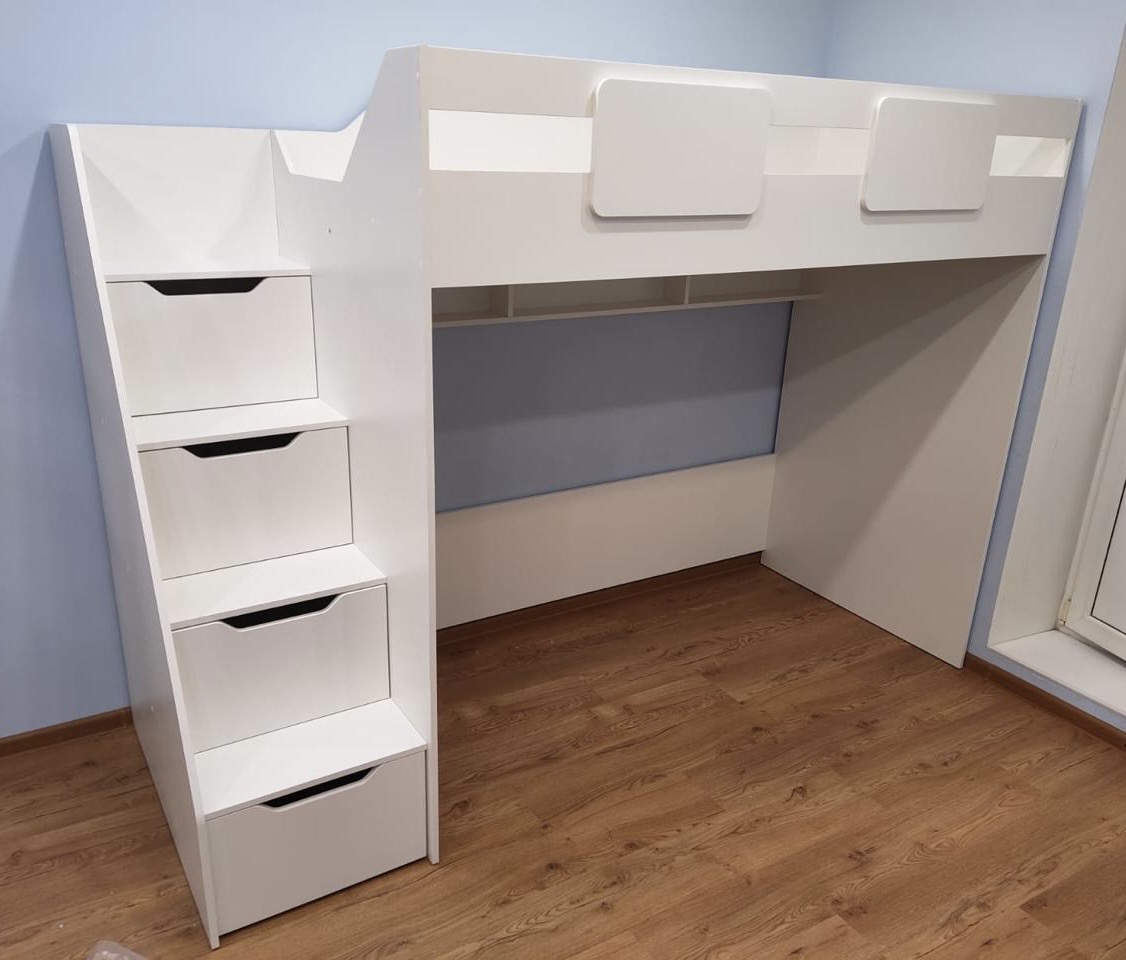 Мебель выполнена из сертифицированного, качественного, экологически чистого ЛДСП класса Е0,5 в белом цвете.