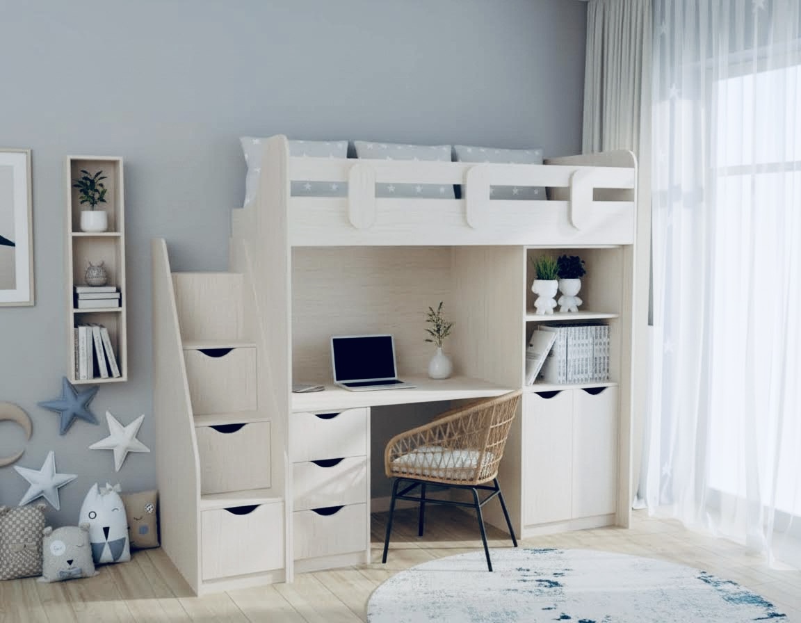 Вместо них - цельный и прочный настил из ЛДСП, который выдерживает сверхвысокую нагрузку и позволяет расположиться даже взрослому с ребенком.