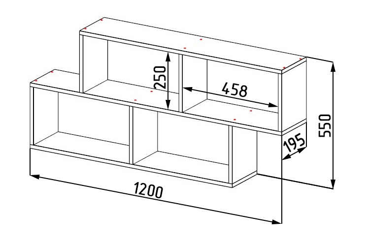 Габариты полки: ширина 1200, глубина 190, высота 550 мм