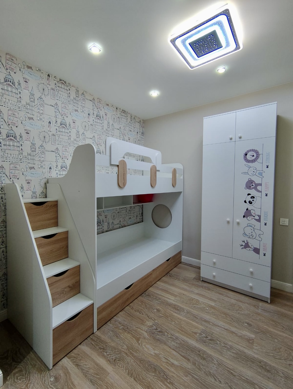 Выдвижные ящики в нижней кровати изготовлены с применением метабоксов, что делает изделие практичным и надежным.
