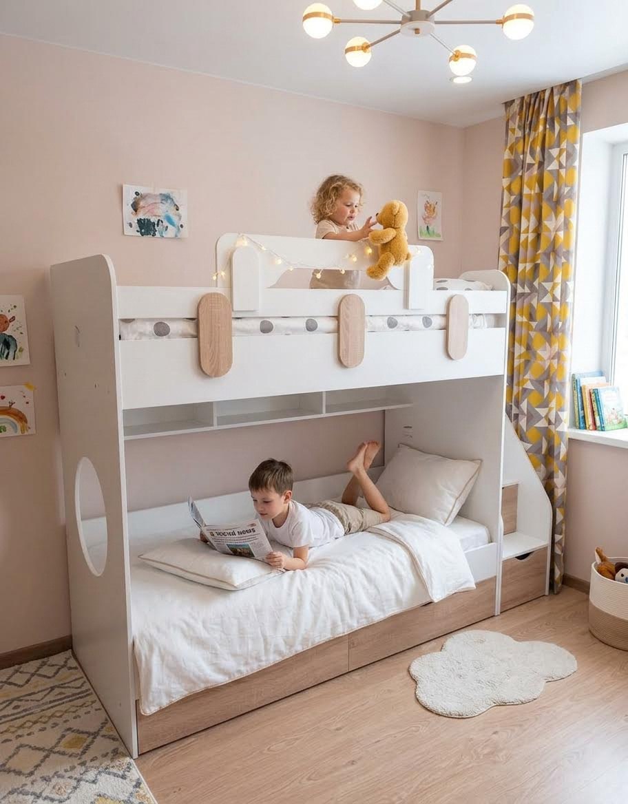 Вместо них - цельный и прочный настил из ЛДСП, который выдерживает сверхвысокую нагрузку и позволяет расположиться даже взрослому с ребенком.