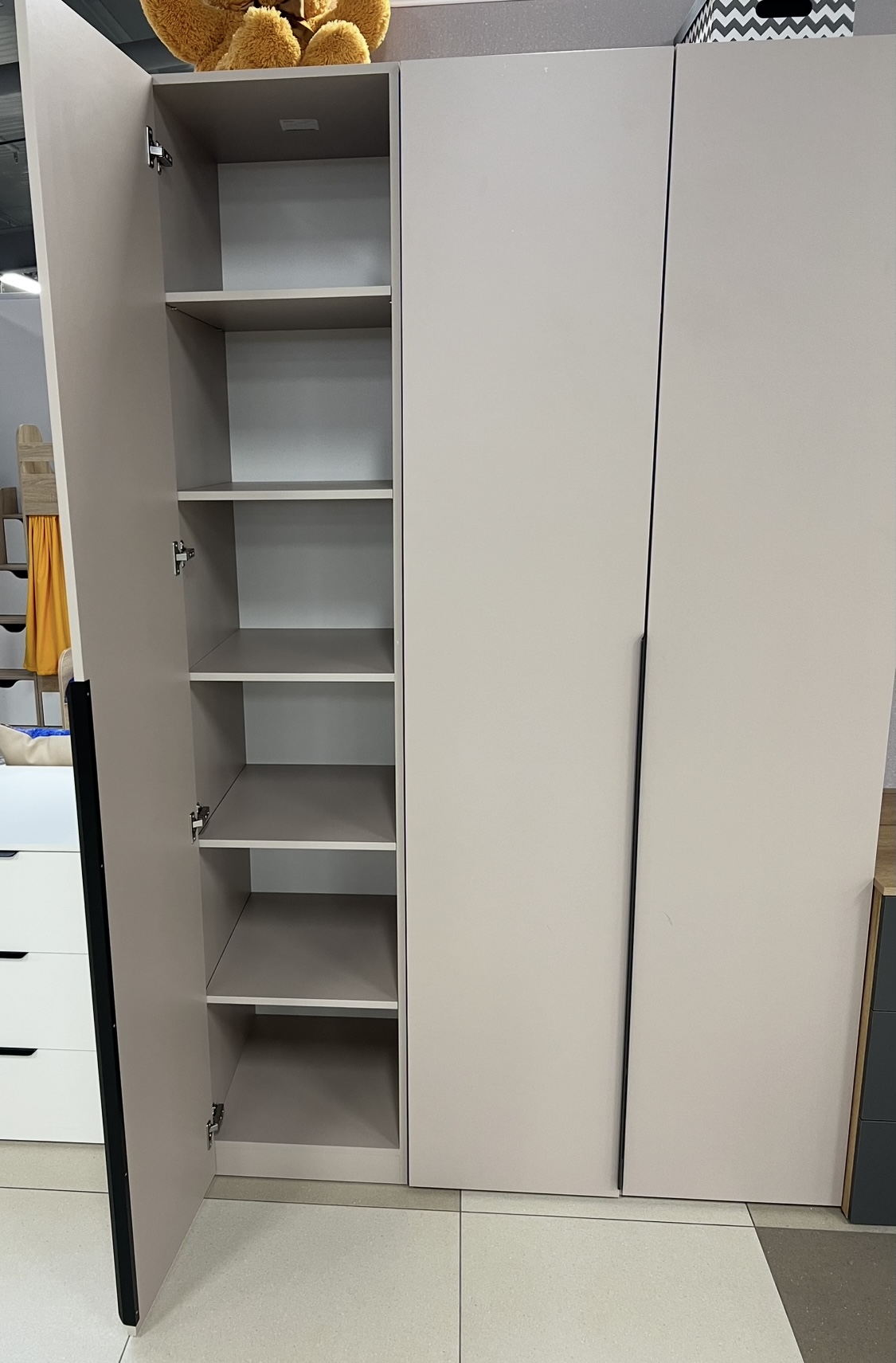 На дверях шкафа установлены доводчики.