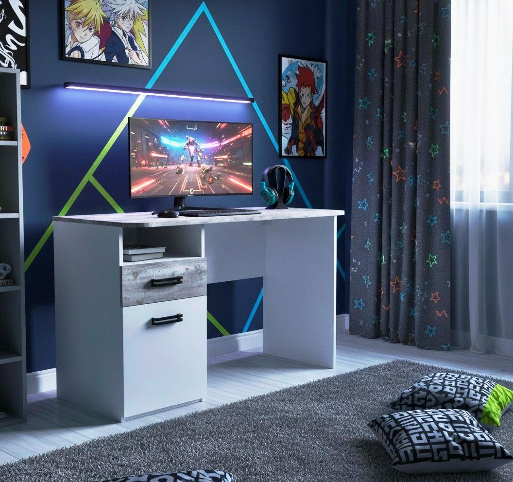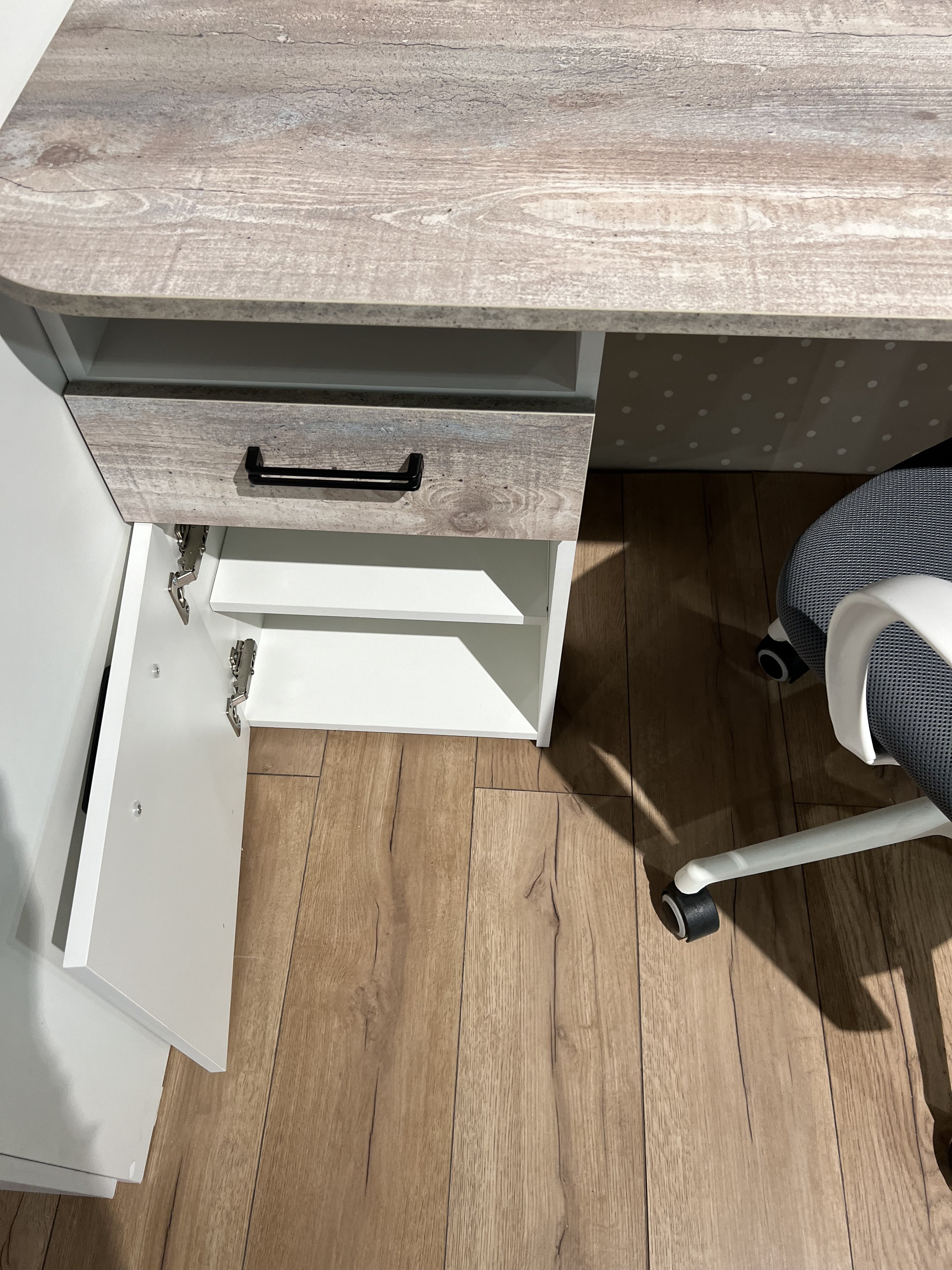 Мебель выполнена из сертифицированного, качественного, экологически чистого ЛДСП класса Е0,5 в сочетании цветов "бетон пайн" + белый.