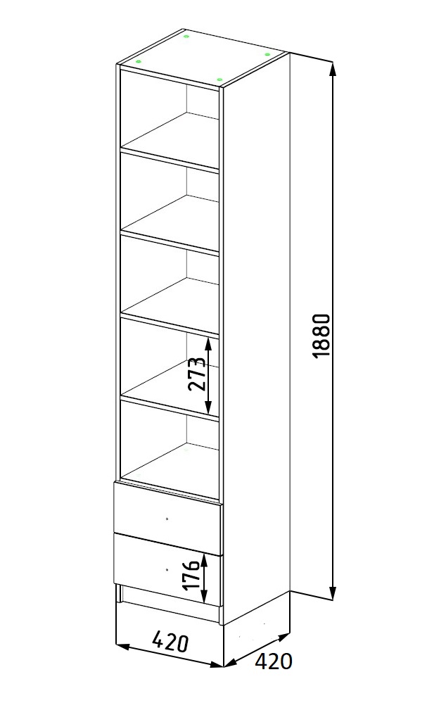 Габариты: ш4ирина 20 х высота 1880 х глубина 420 мм