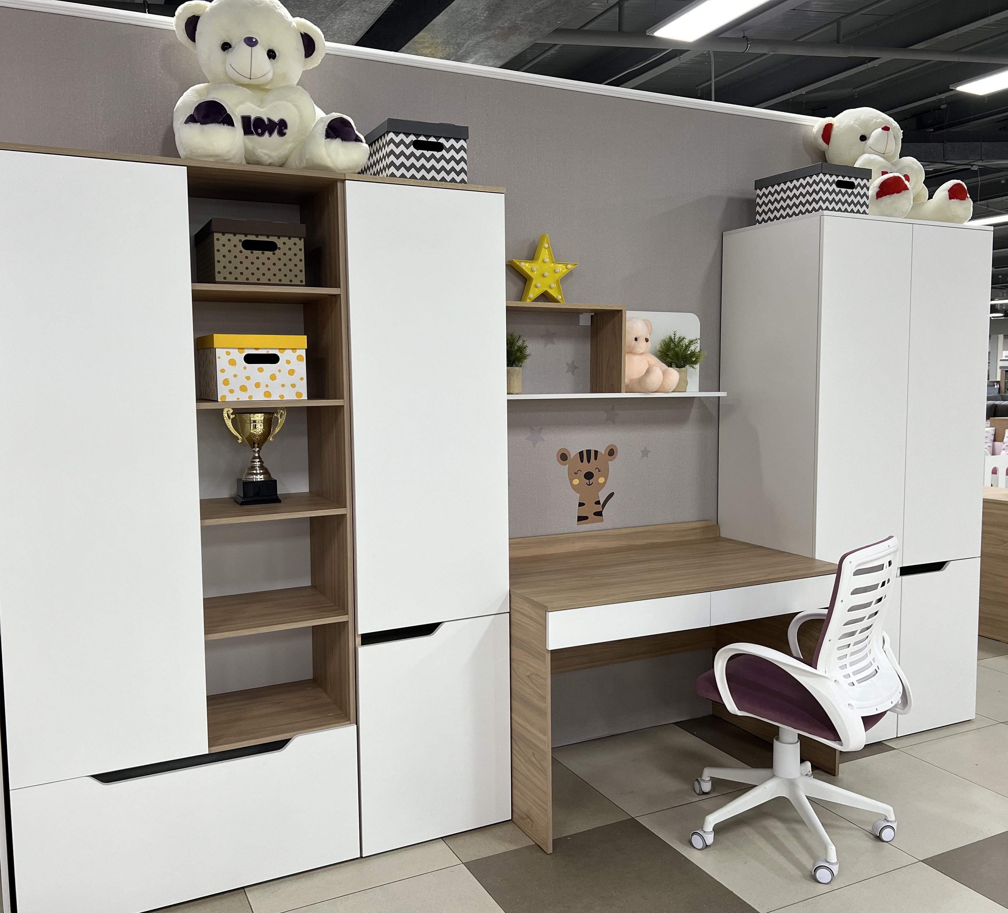 кровать односпальная + кровать-чердак + стол + тумба для стола + полка навесная + шкаф-стеллаж