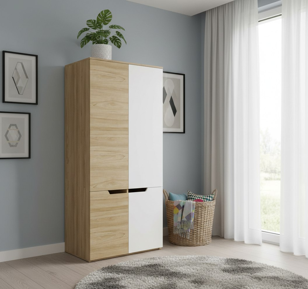 Мебель выполнена из сертифицированного, качественного, экологически чистого ЛДСП класса Е0,5 в цветах вяз швейцарский + белый.