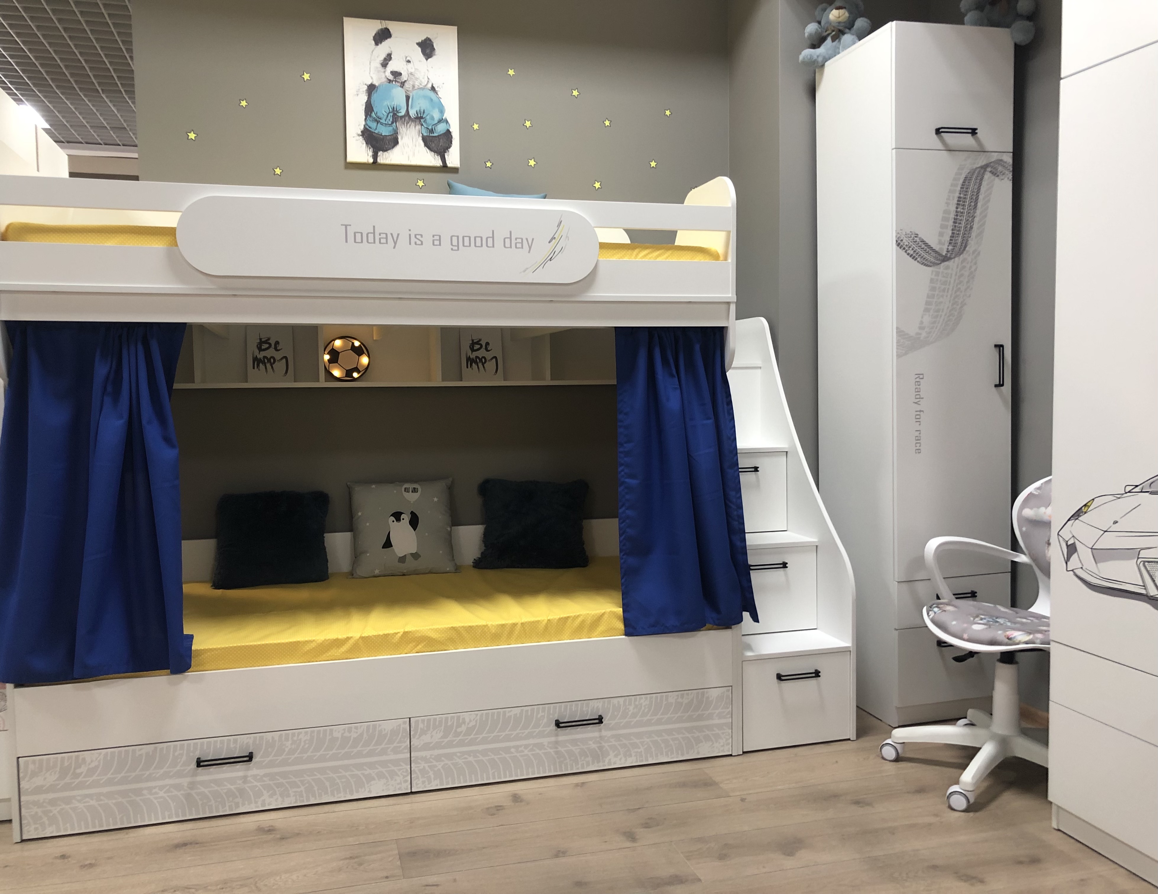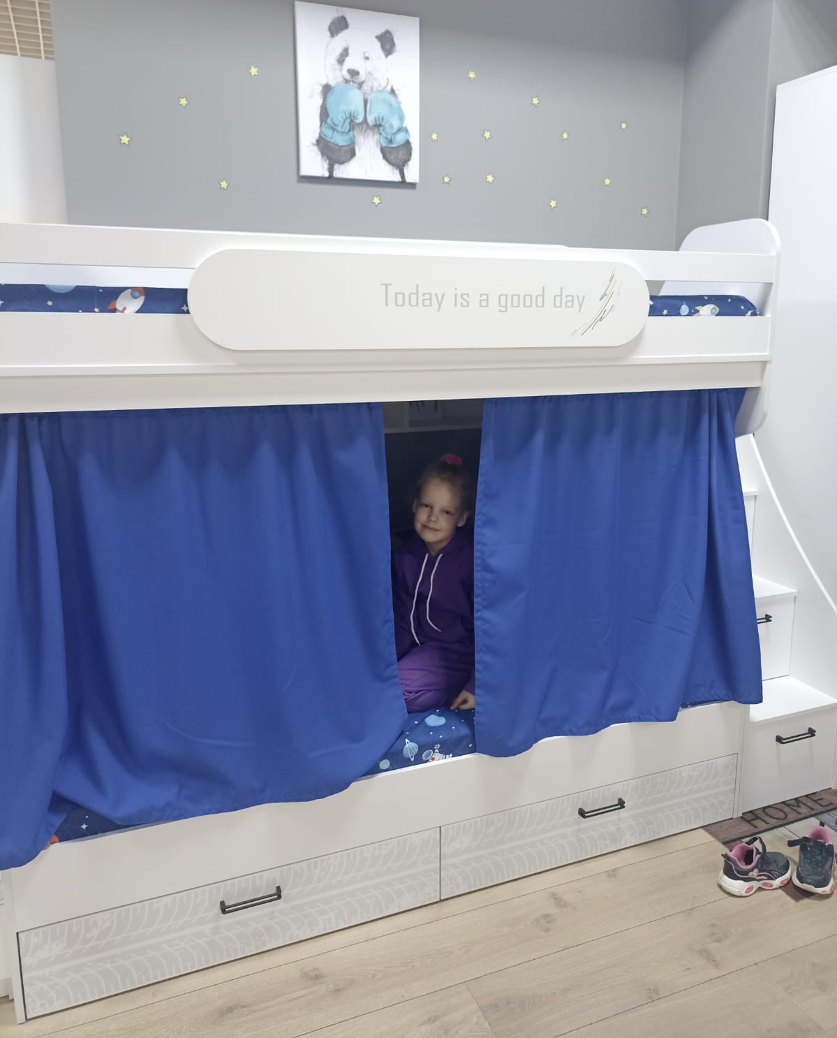 Высота кровати комфортна для сна - на втором этаже ребенку будет не душно спать.