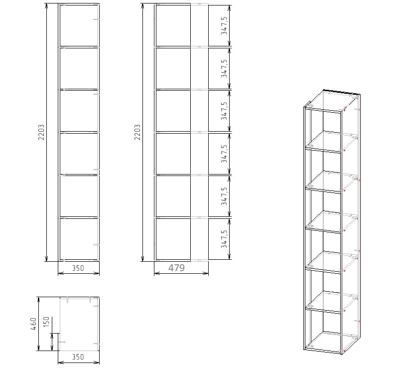 Габариты: ширина 350 х высота 2203 х глубина 479 мм