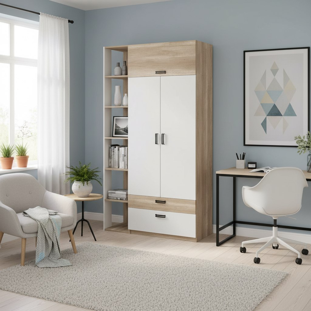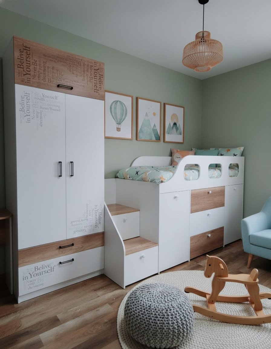 Идеально вписывается в детскую комнату, шкаф очень практичный и вместительный, по своим габаритам отлично подходит и для небольших комнат.