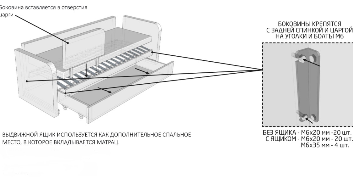 В стоимость входят: защитный универсальный бортик, выдвижной ящик
