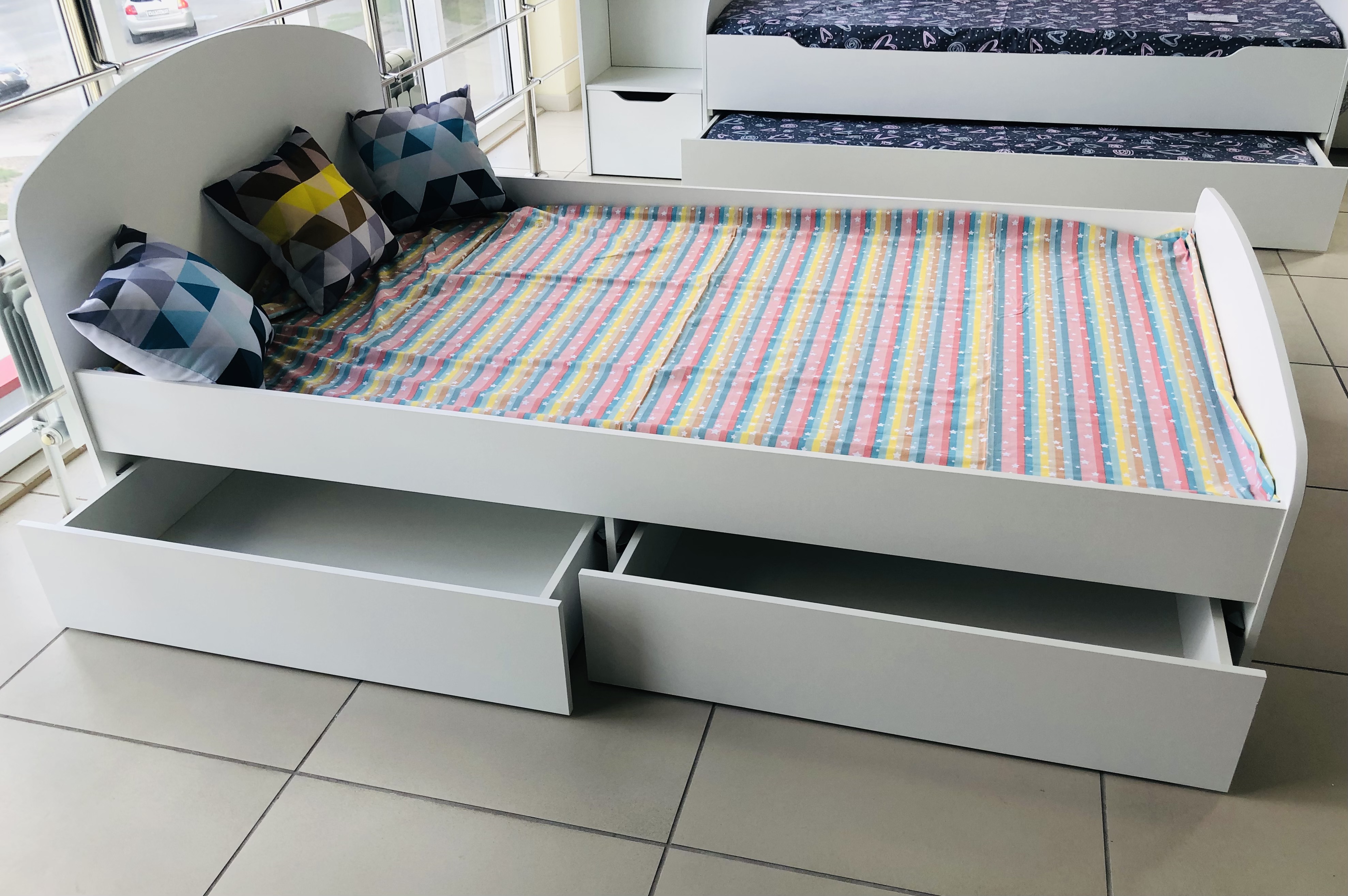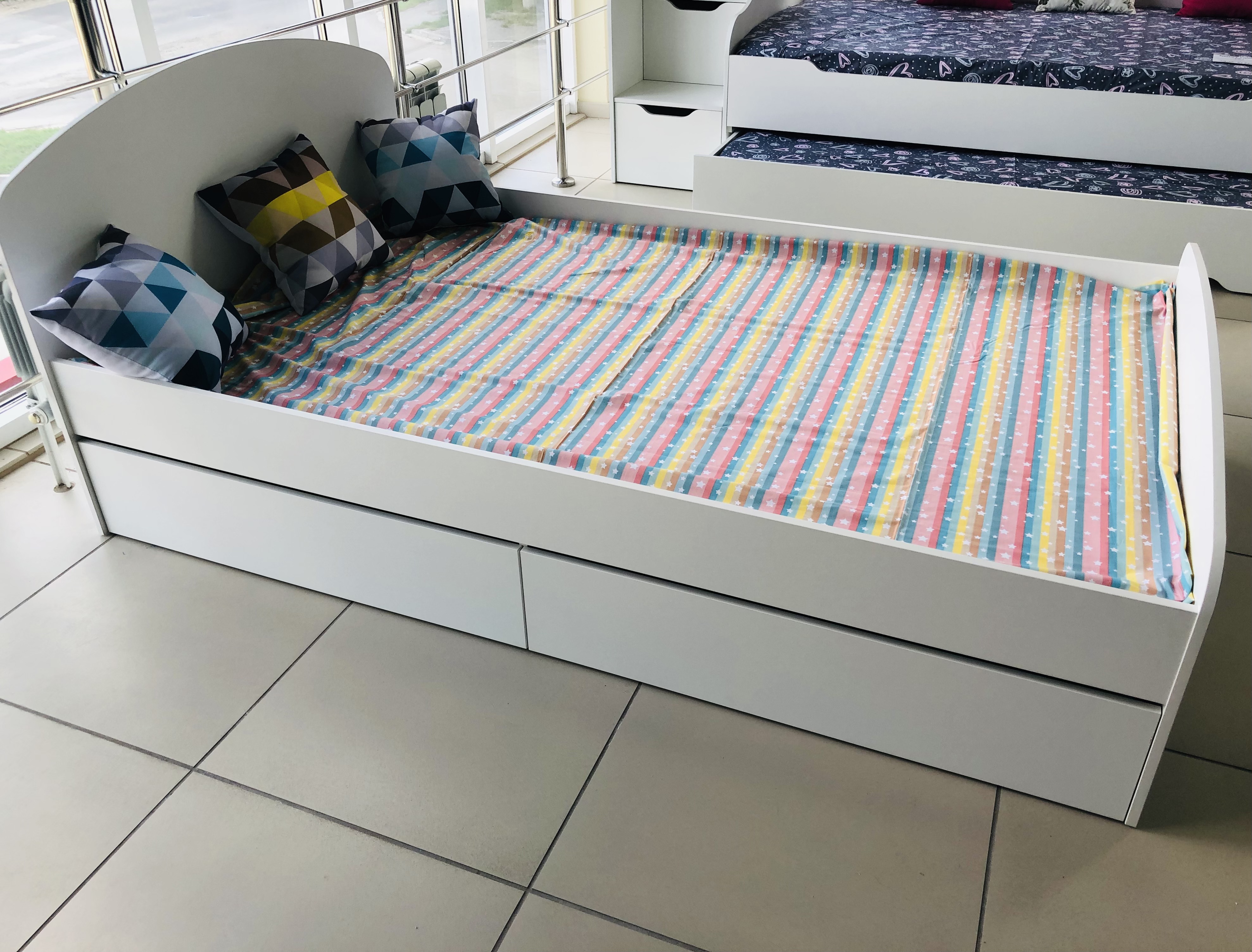 Высокая нагрузка на спальное место. Прочные ящики! |