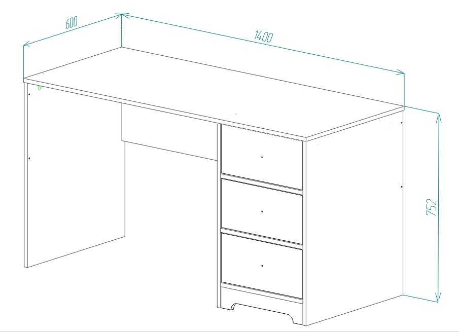 Габариты стола: ширина 1400, глубина 600, высота 752 мм