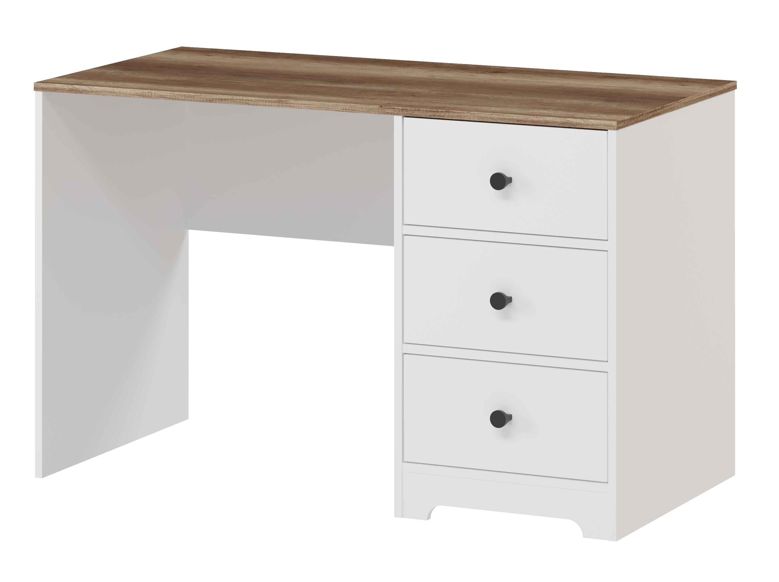 В стол встроены три выдвижных ящика на направляющих скрытого монтажа с ДОВОДЧИКАМИ.