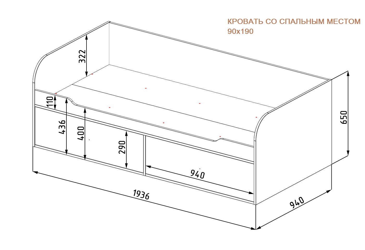 Габариты кровати со спальными местами 90х190: