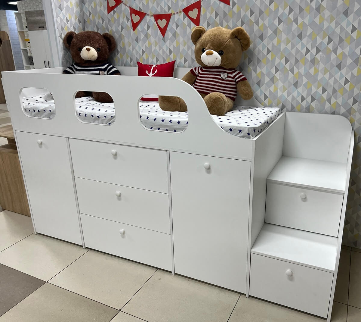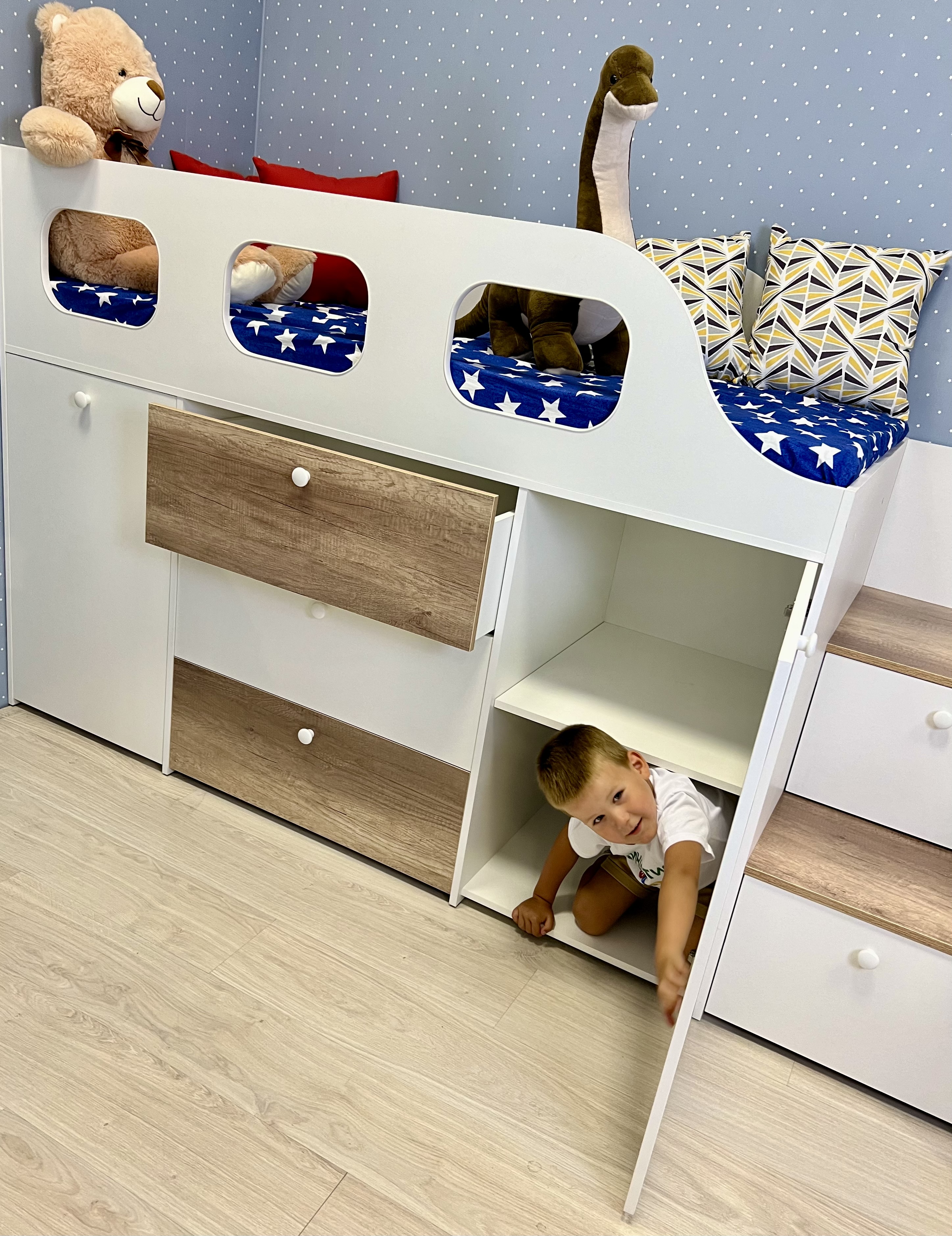 * Основание кровати – прочный настил ЛДСП (НЕ РЕЙКИ!), который позволяет ребенку спать на ровной поверхности, что важно для детской спины.