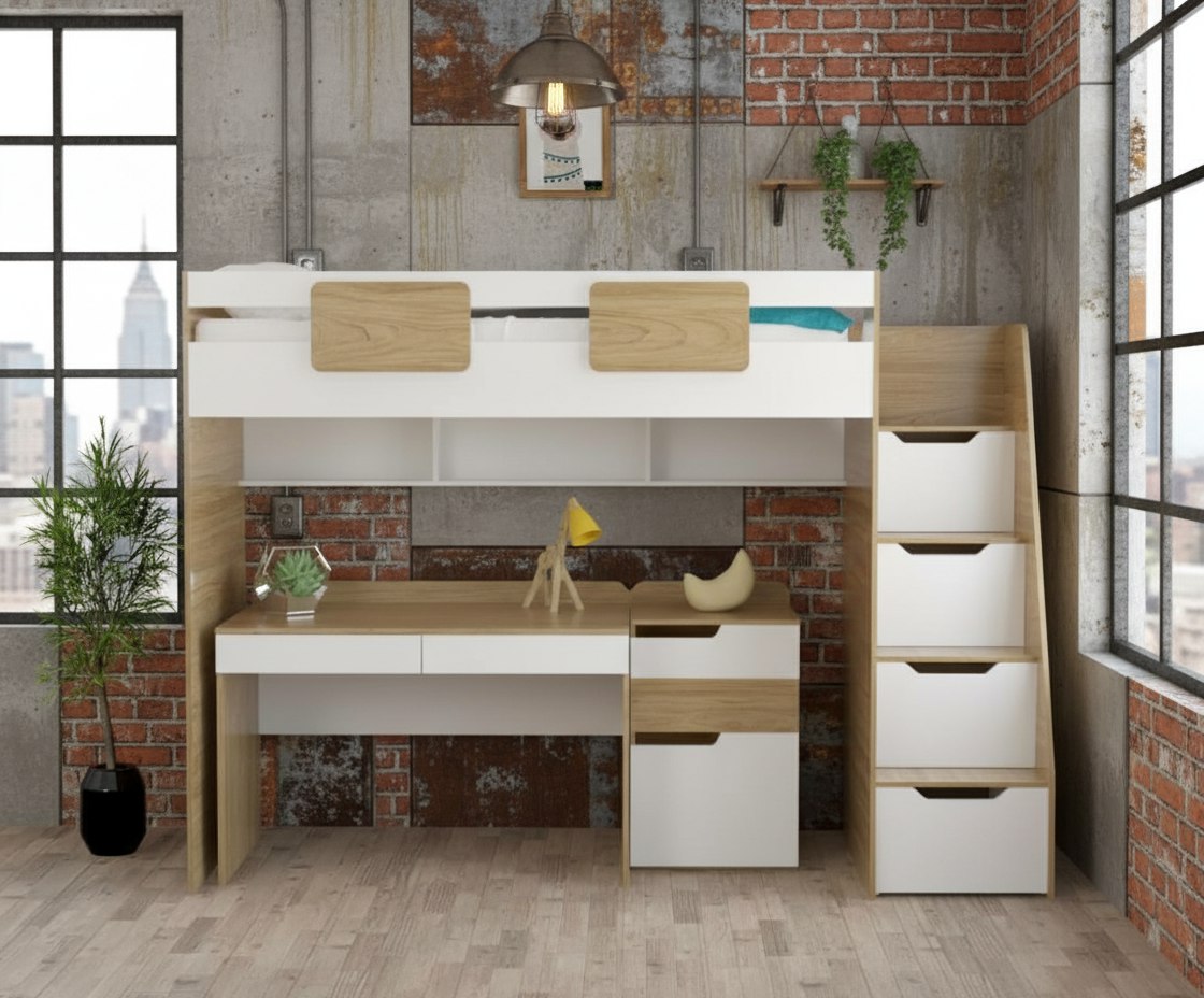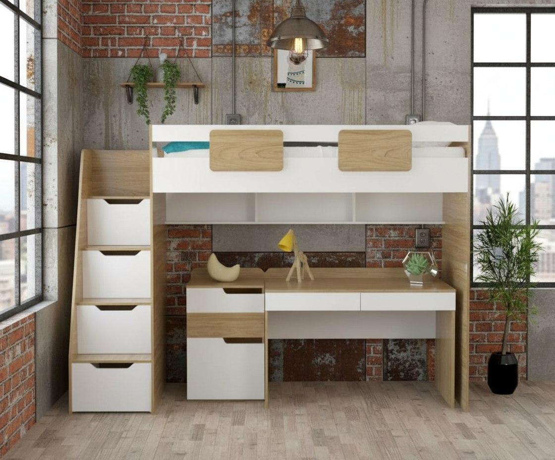 Кровать-чердак Мозаика (правый/левый) + Стол Мозаика + Тумба-комод Мозаика