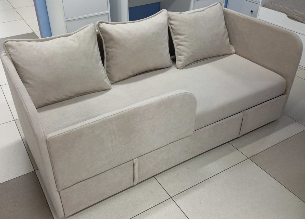 Диванчик подойдет и для самых маленьких деток, так как имеет защитный бортик.