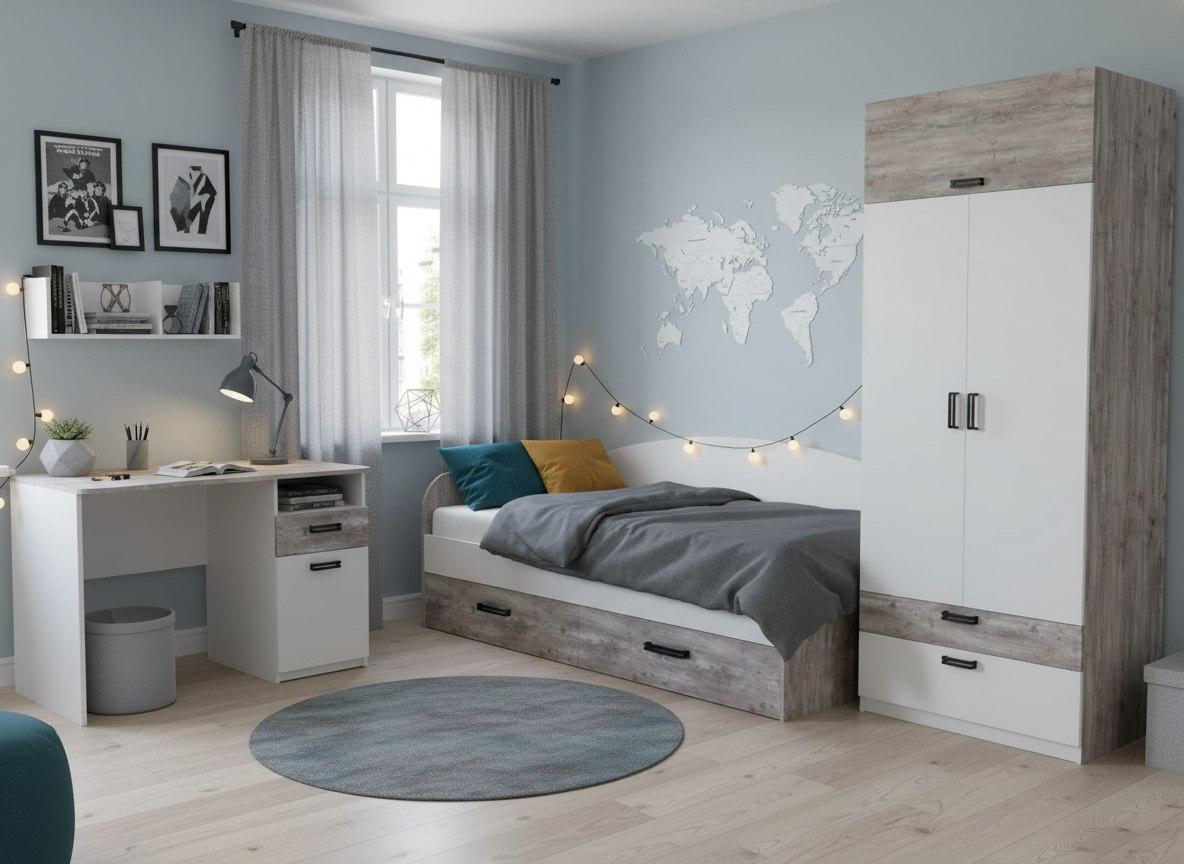Мебель выполнена из сертифицированного, качественного, экологически чистого ЛДСП класса Е0,5  в сочетании цветов "бетон пайн" + белый.