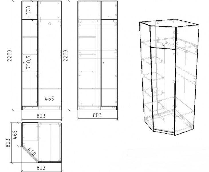 Габариты шкафа: высота 2203 х глубина 465, ширина 803х803 мм